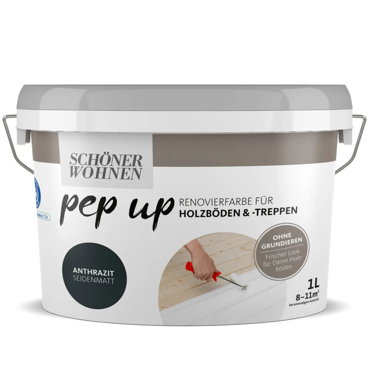 Mit dem Schöner Wohnen Farbe pep up Holzböden und -treppen anthrazit erhalten Sie einen hochwertigen Fußbodenlack, der nicht nur schnell trocknet sondern auch besonders ergiebig ist. Dank des seidenmatten Glanzgrades wird Ihr Bodenauftritt zu einem echten Highlight in Ihrem Zuhause. Darüber hinaus ist der Lack emissionsarm sowie konservierungsmittelfrei – somit schonend für Mensch und Umwelt.