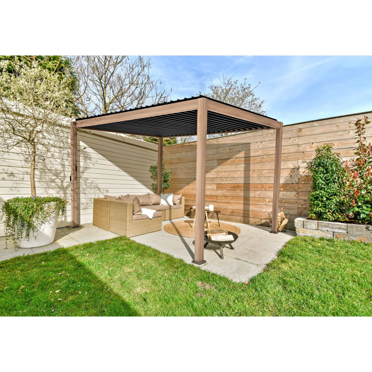Pergola 111 Deluxe Dark Oak Holzoptik 300 x 250 x 600 cm* Best