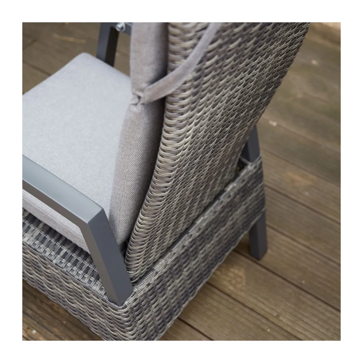 - Gestell und Armlehnen aus pulverbeschichtetem Aluminium in edlem matt anthrazit