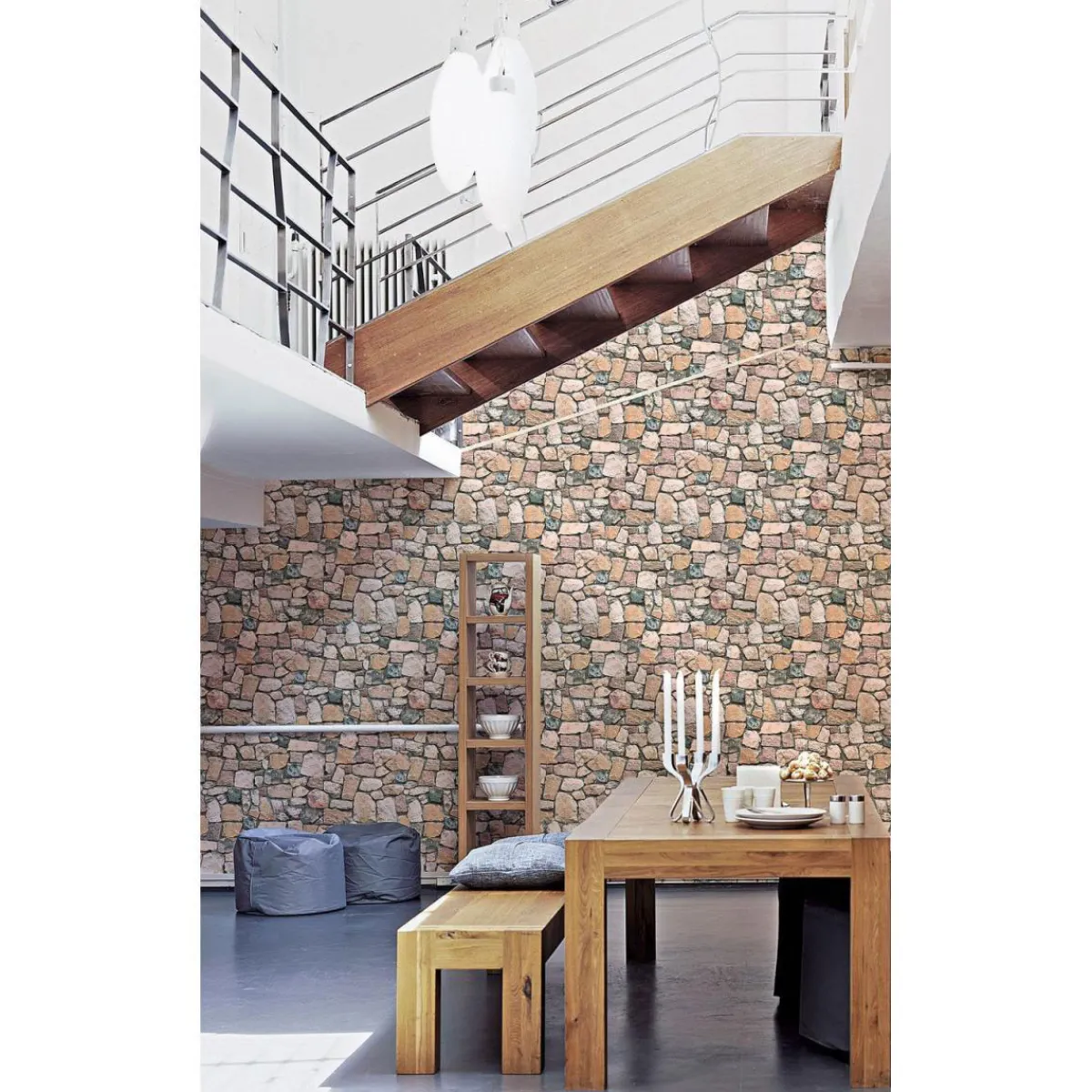 Die Prägetapete Bruchstein eignet sich perfekt für alle, die ihrem Zuhause einen rustikalen Touch verleihen möchten. Besonders in Flur/Diele, Küche oder Wohnzimmer kommt das Stein-Dekor optimal zur Geltung. Auch im Schlafzimmer sorgt die Tapete für eine gemütliche Atmosphäre.