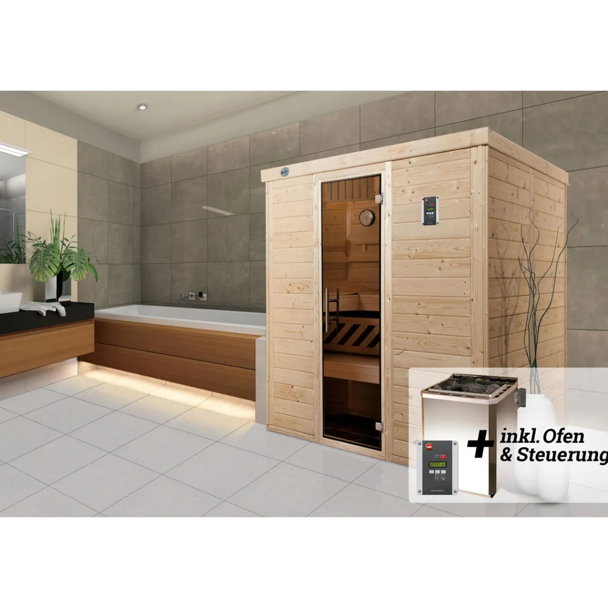 Weka Premium Massivholz-Elementsauna Kemi Größe 3 Sparset 7,5 kW Bio S – Entspannung pur für Zuhause