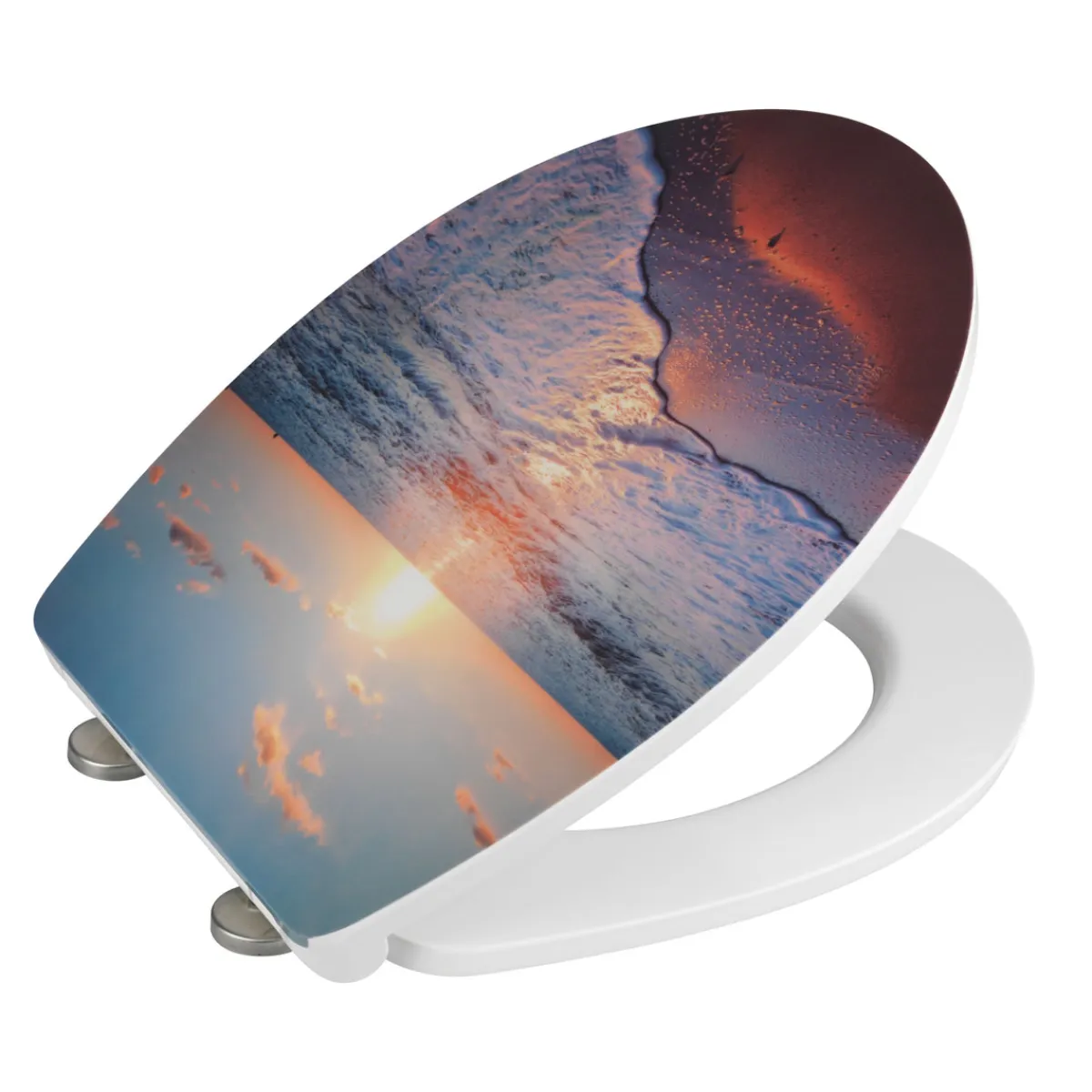 Mit dem Wenko Premium WC-Sitz Sunset holen Sie sich ein Stück Natur ins Badezimmer. Der Sitz aus robustem Duroplast ist mit einem naturgetreuen Motiv bedruckt und verleiht Ihrem WC eine warme Atmosphäre. Die integrierte Absenkautomatik sorgt für geräuschloses Schließen des Deckels und schützt vor Verletzungen.
