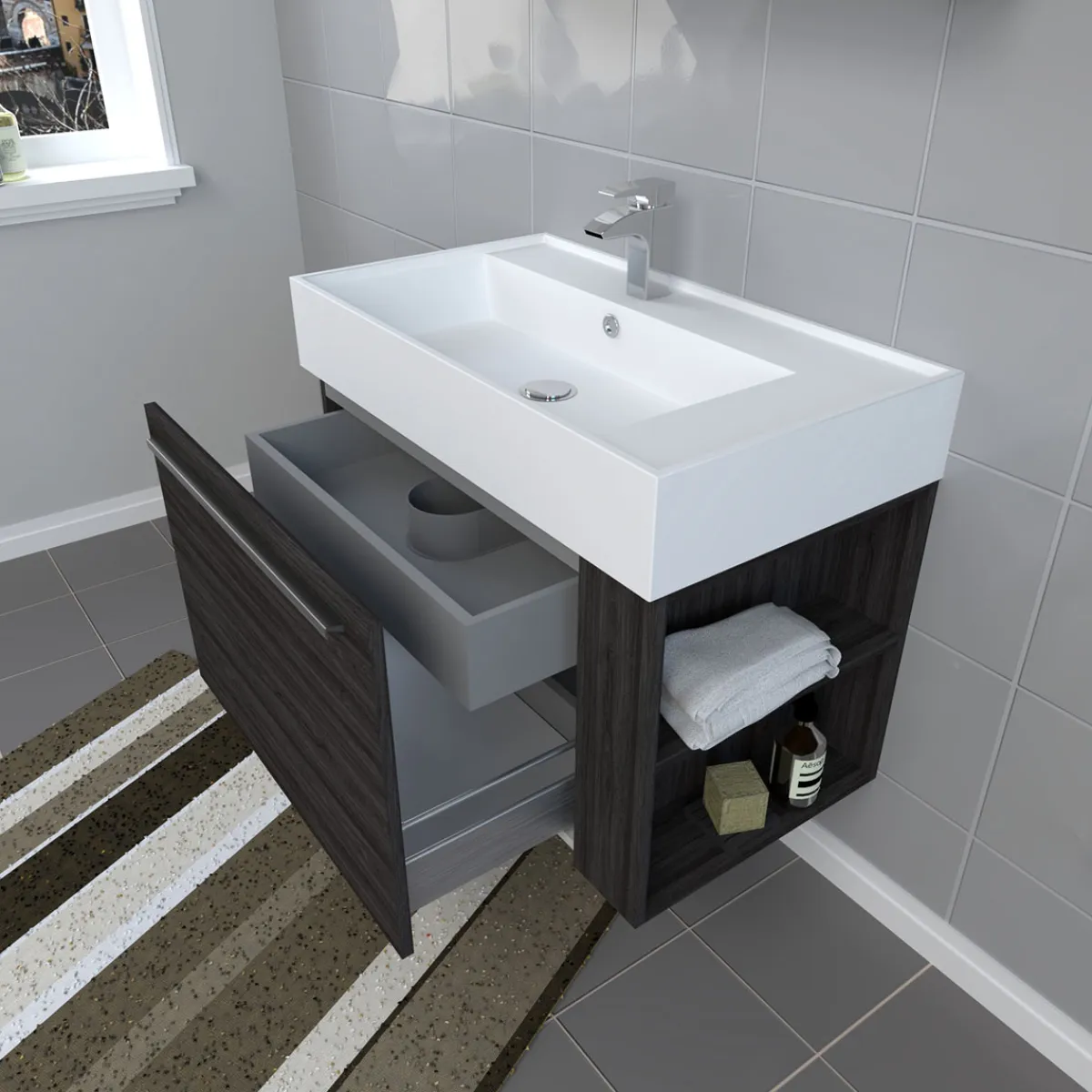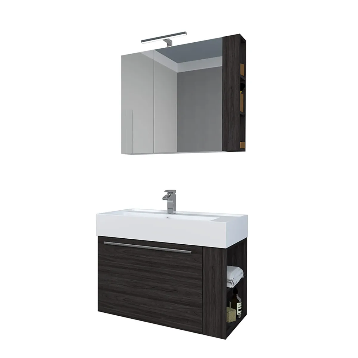 Erleben Sie mit dem Progetto Idea Stella Badmöbel-Set DOMUS 80 in Ulme Onyx ein stilvolles Badezimmer, das zum Verweilen einlädt. Mit seinem modernen Design und hochwertigen Materialien ist dieses Set die perfekte Wahl für alle, die Wert auf Qualität und Ästhetik legen.