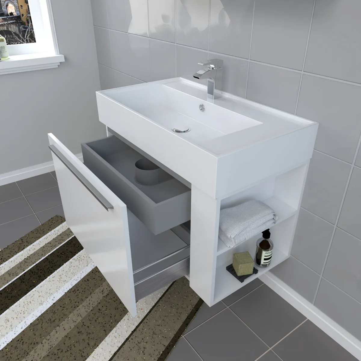 Das Progetto Idea Stella Badmöbel-Set DOMUS 80 in glänzender Optik bietet Ihnen nicht nur eine luxuriöse Ausstattung für Ihr Badezimmer, sondern auch eine hohe Funktionalität. Mit dem vormontierten Spiegelschrank haben Sie genügend Stauraum und die integrierte Lampe sorgt für eine angenehme Atmosphäre beim Styling oder Schminken. Die Soft-Close-Funktion an den Schubladen verhindert zudem lästiges Knallen beim Schließen. Investieren Sie jetzt in dieses hochwertige Set und verwandeln Sie Ihr Badezimmer in eine Wohlfühloase.