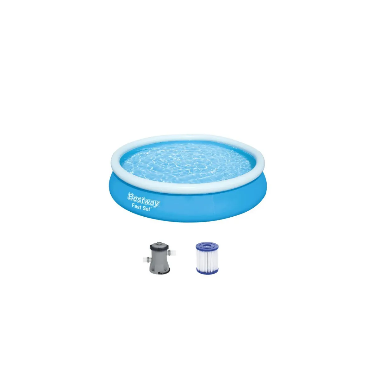 - Lieferumfang: Schwimmbecken inkl. Filterpumpe, Filterkartusche und selbstklebendem Reparaturflicken