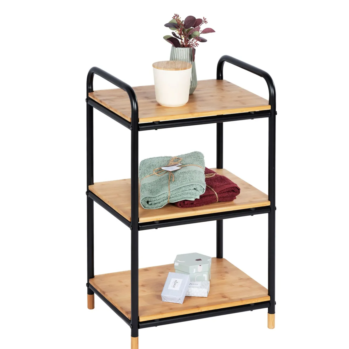 Das Wenko Regal Loft aus Bambus mit 3 Etagen ist ideal für alle Kunden, die auf der Suche nach einem stilvollen und praktischen Möbelstück sind. Es eignet sich perfekt für das Bad oder den Wohnbereich und bietet viel Stauraum.