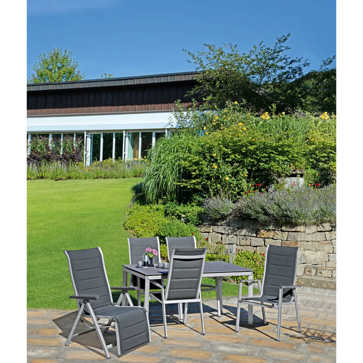 Der MWH Relaxsessel Elemento ist der perfekte Begleiter für gemütliche Stunden im Freien. Mit seiner gepolsterten Textilbespannung und der verstellbaren Rückenlehne bietet er höchsten Komfort und lässt sich dank seines klappbaren Aluminiumgestells platzsparend verstauen.