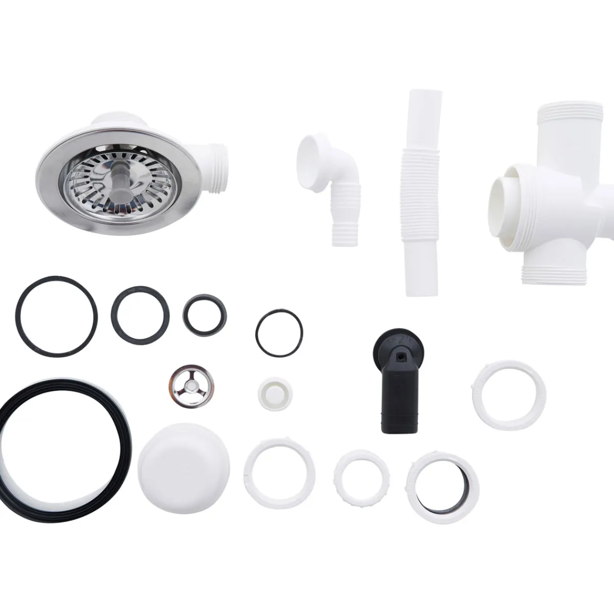 Respekta Boston Mineralite Einbauspüle (86 x 50 cm) aus strapazierfähigem Mineralit. Die Spüle ist temperaturbeständig bis 180 °C. Sie ist wechselseitig rechts oder links einbaubar und passt in Unterschränke ab 45 cm Breite. Im Lieferumfang sind eine Ab- und Überlaufgarnitur sowie ein Siebkorb enthalten. Hahnlöcher sind nicht durchgestoßen.
