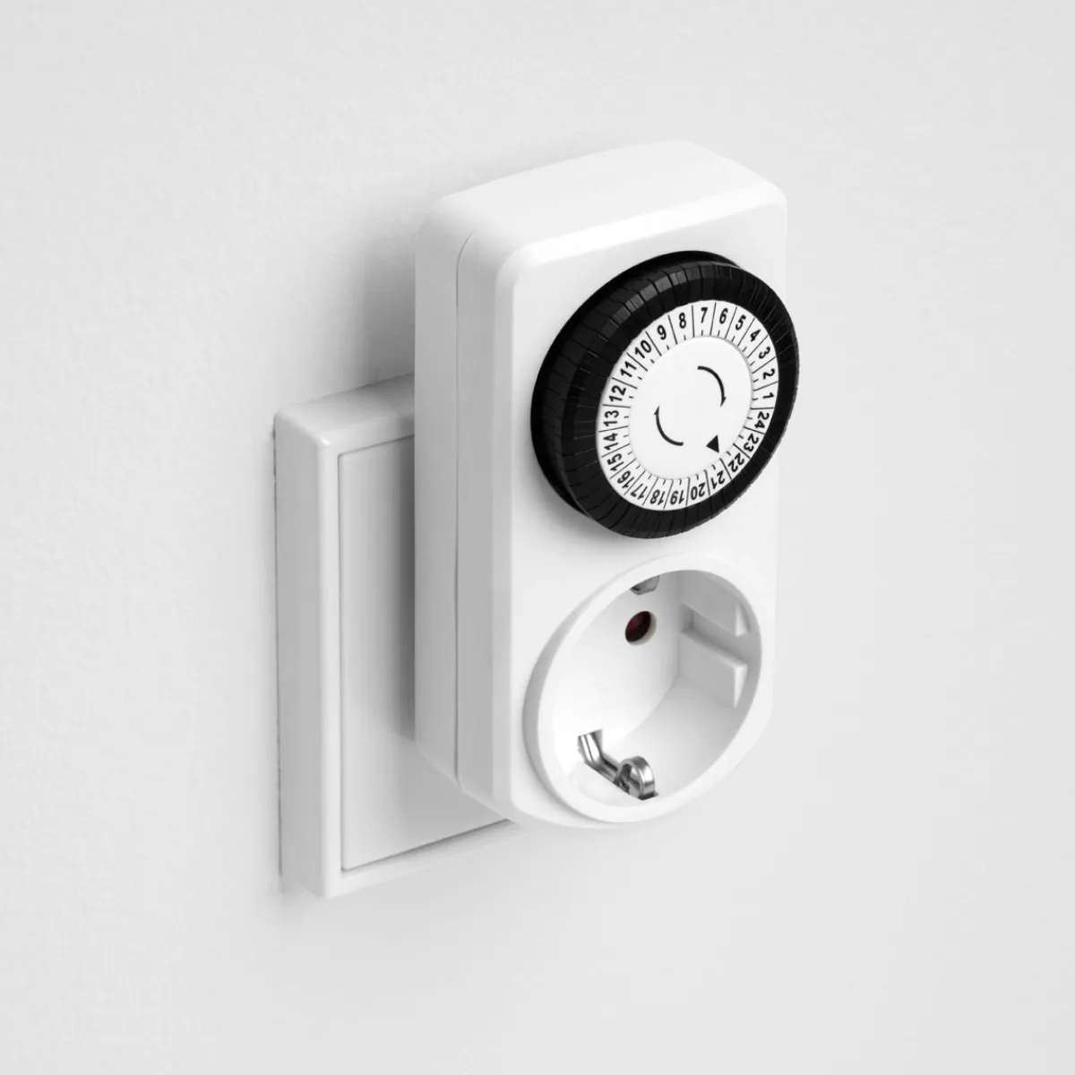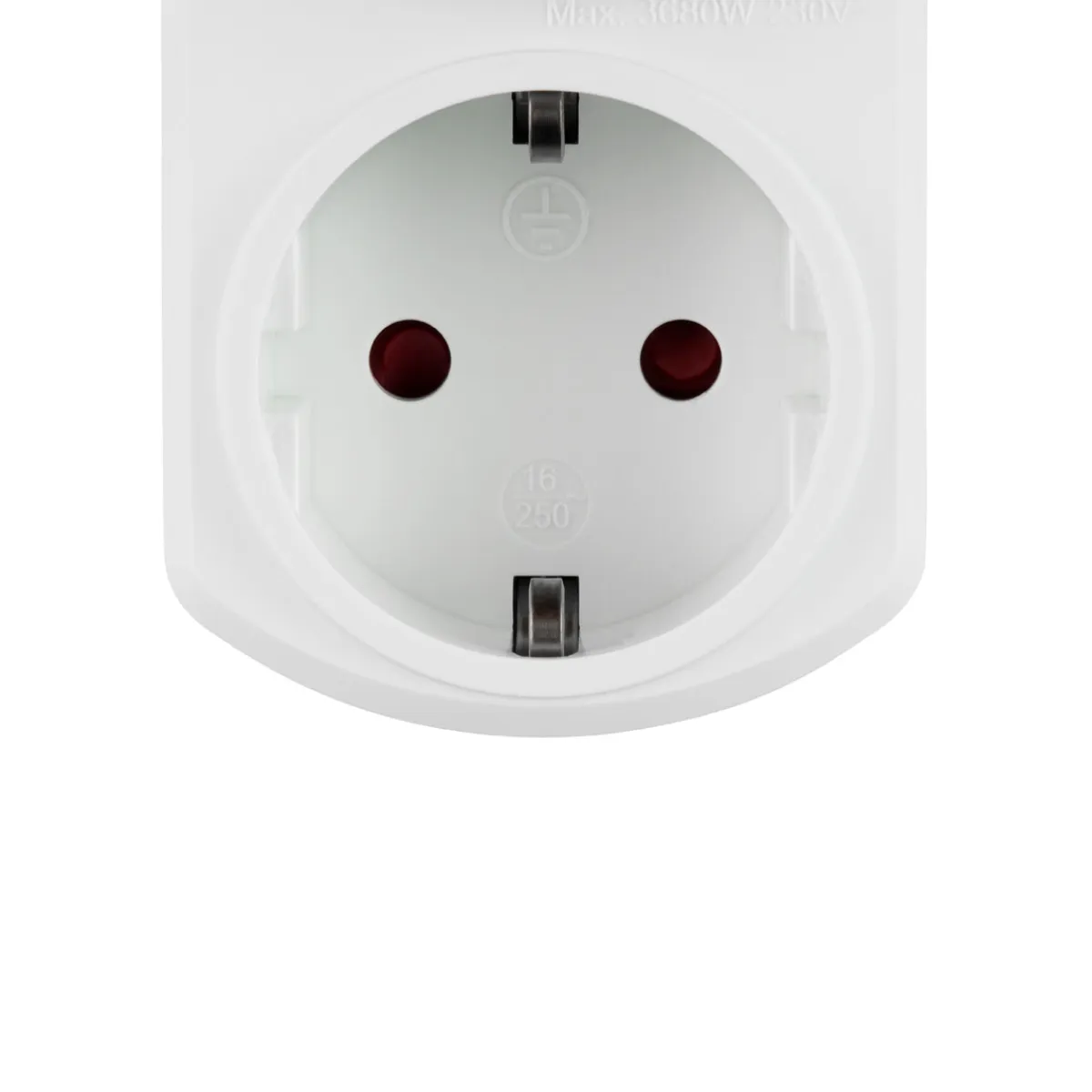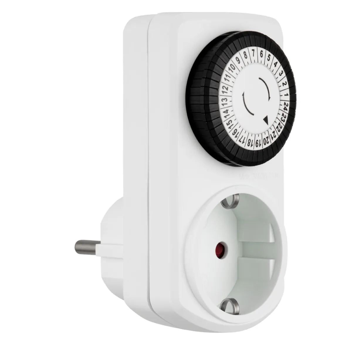 - PRAKTISCH – Zwischenstecker mit Schalter für Ein/Aus und zeitgesteuertes Schalten (1-polig).