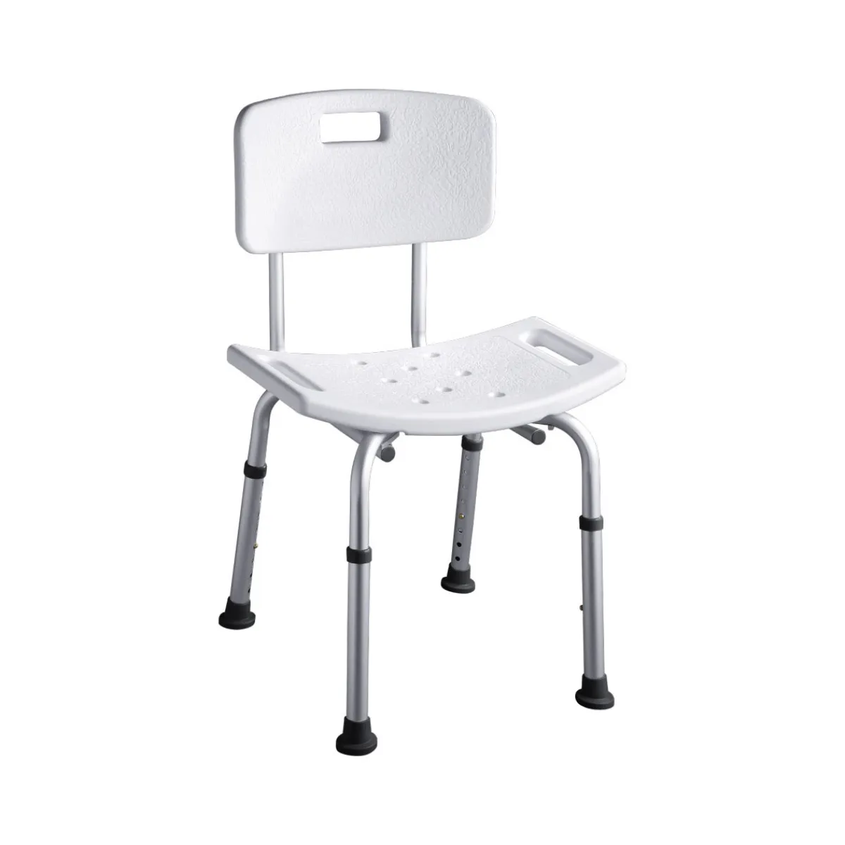- – Rutschhemmende Sitzfläche und Fußstopfen für sicheren Halt im Nassbereich
