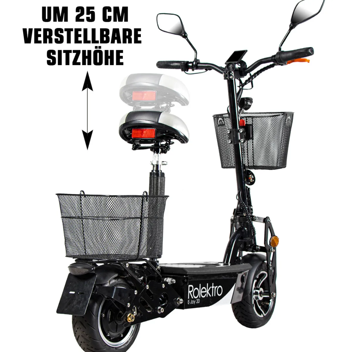 | Lieferumfang: | 1 x E-Joy 20 ,1 x EEC EU-Straßenzulassung, 1 x Ladegerät, 1 x Korb hinten, 1 x Korb vorne, 2 x Spiegel, 1 x Werkzeug-Kit |
