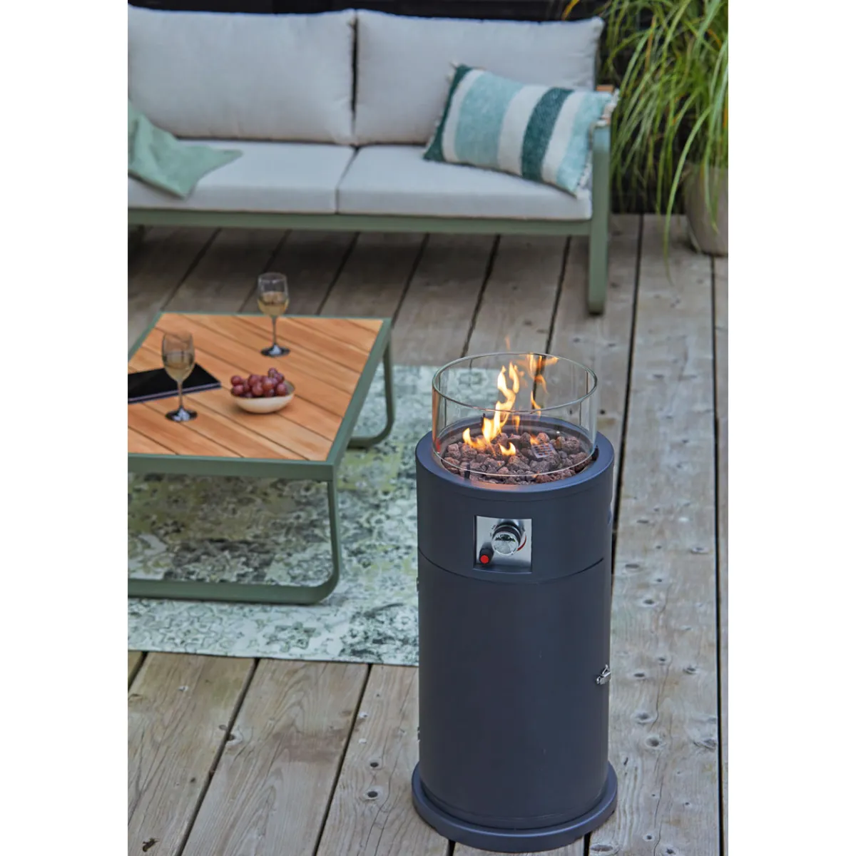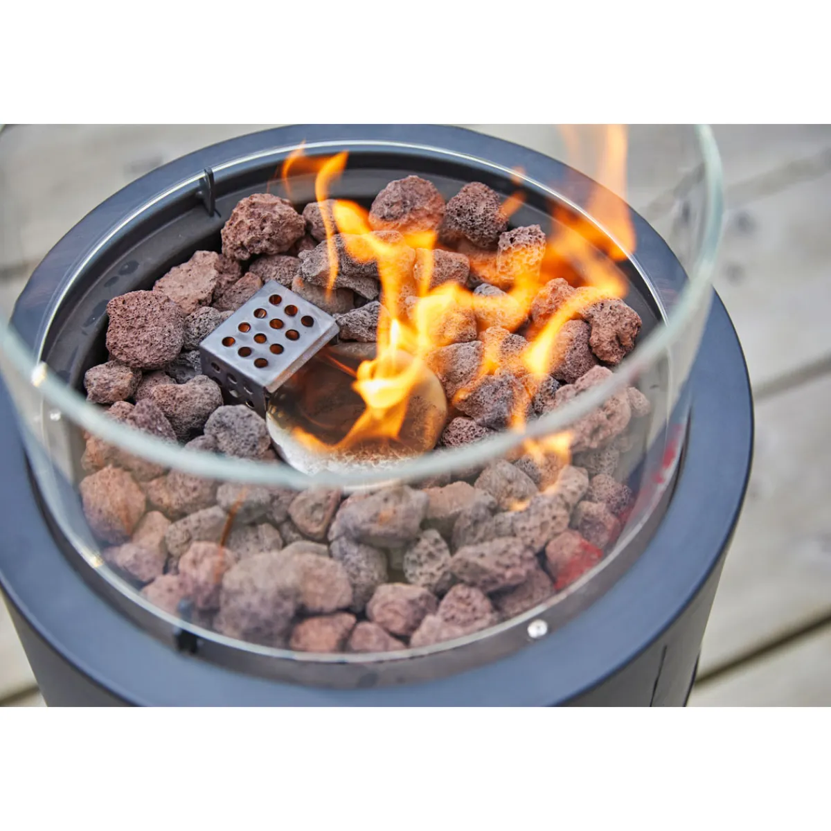 - Lieferumfang: inklusive Lavasteine, Windschutzglas, Schlauch und Regler