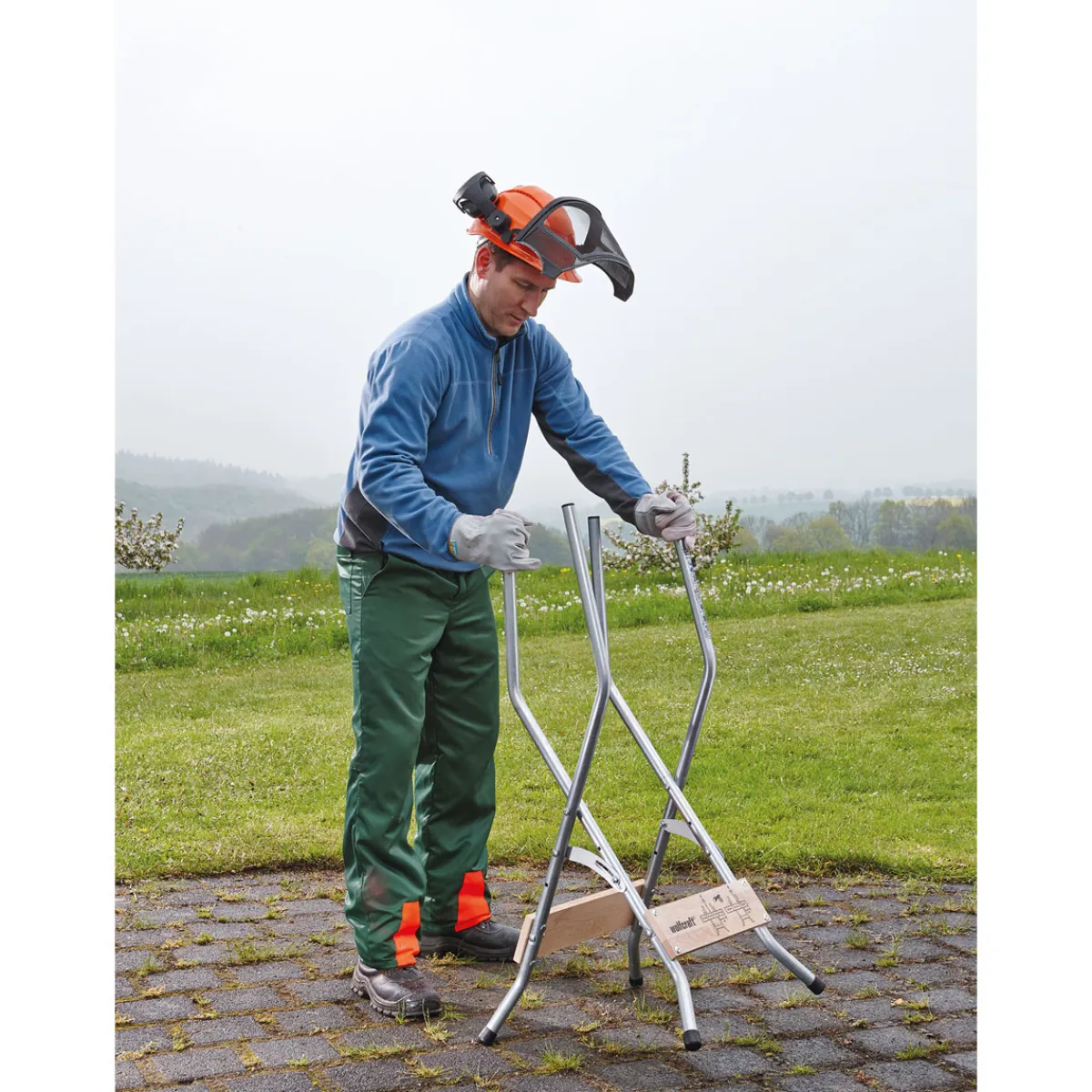 Wer viel mit Kettensägen arbeitet oder einfach nur Brennholz sägt, sollte auf den Wolfcraft Sägebock SB 60 nicht verzichten. Er bietet eine maximale Breite von einem Meter sowie eine hohe Tragkraft von bis zu hundert Kilogramm. Dank seiner Ausstattung mit Auswurfsicherung und klappbaren Holzbrettern mit integrierten Markierungen geht das Arbeiten schnell und sicher von der Hand.