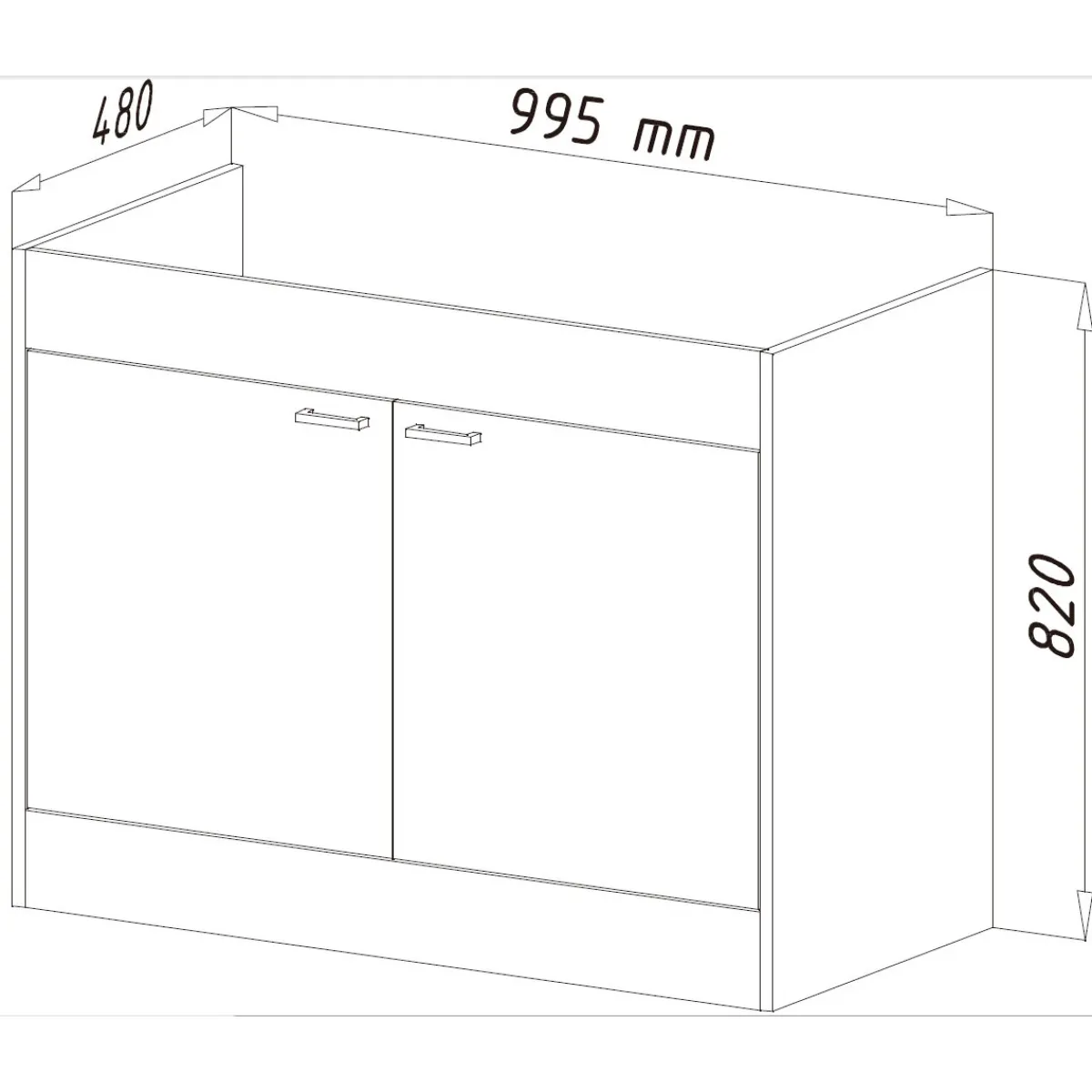 - Lieferumfang 1 Auflagenspüle 100×50, 1 Holzunterschrank
