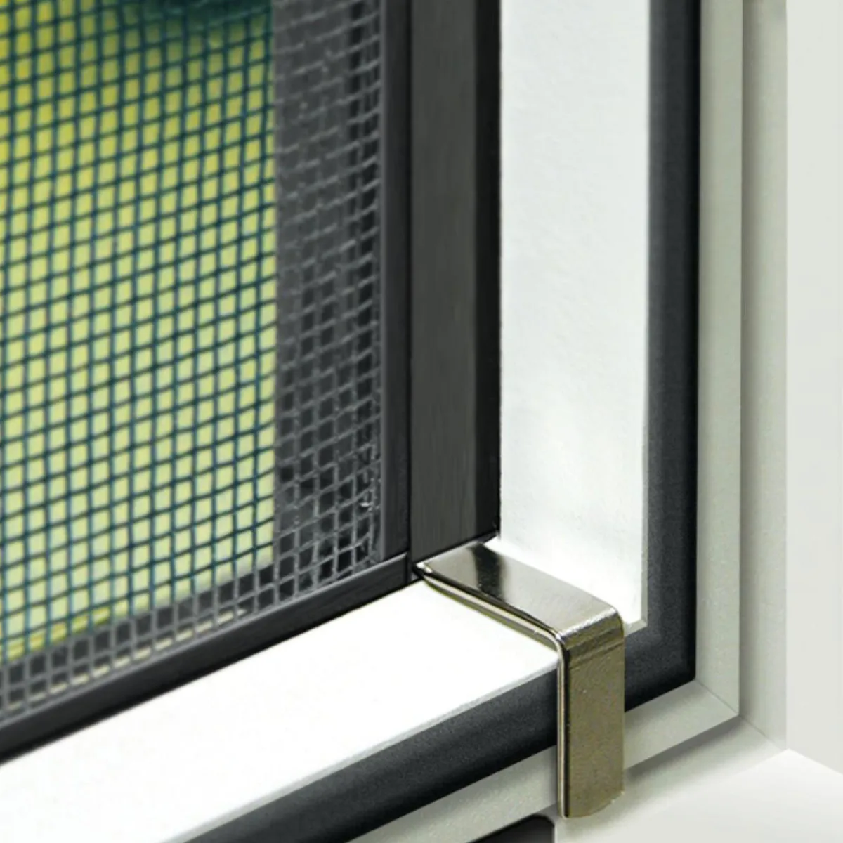 Biegen Sie dazu einfach die Einhängefedern auf das gewünschte Tiefenmaß zurecht und stecken Sie diese beim Zusammenbauen Ihres Insektenschutzes gemeinsam mit den Eckverbindern in die Profile des Rahmens. Dank der praktischen Einhängefedern lässt sich der fertig montierte Insektenschutz dann einfach in den Fensterrahmen einhängen. Bei Bedarf kann er jederzeit ausgehängt werden, z. B. vor dem Winter oder zum Fensterputzen. Das Einhängen und Aushängen lässt sich bequem von innen erledigen und ist somit auch in höheren Stockwerken leicht zu bewerkstelligen.