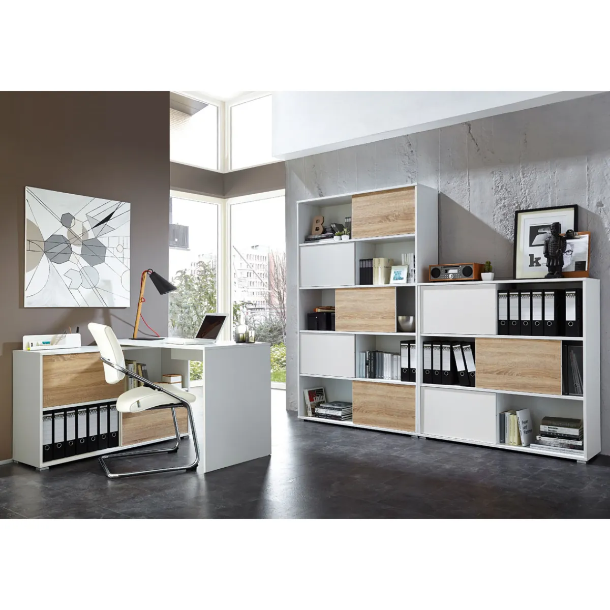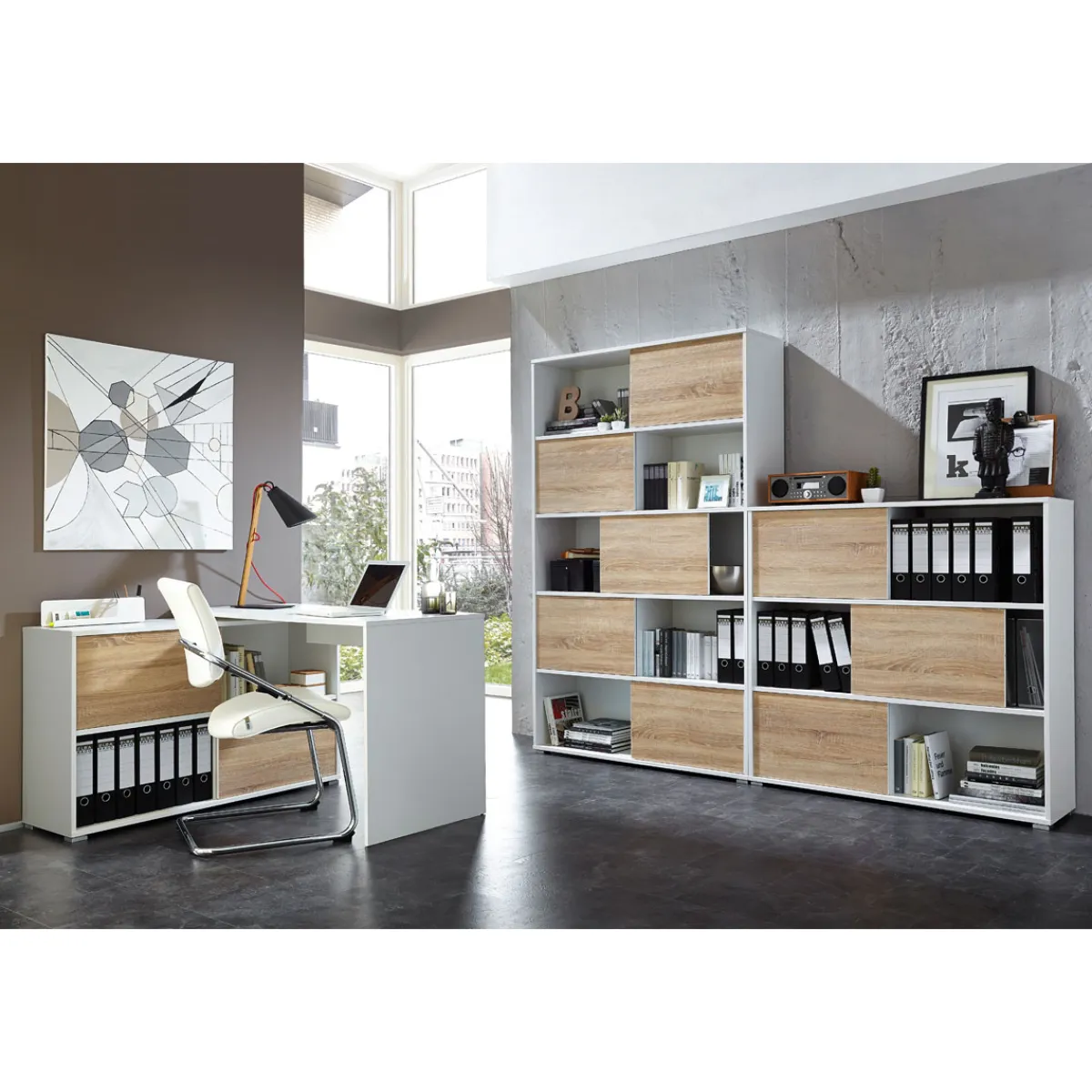 Schaffen Sie Ordnung mit dem Schiebetürregal anthrazit/Sonoma Eiche!