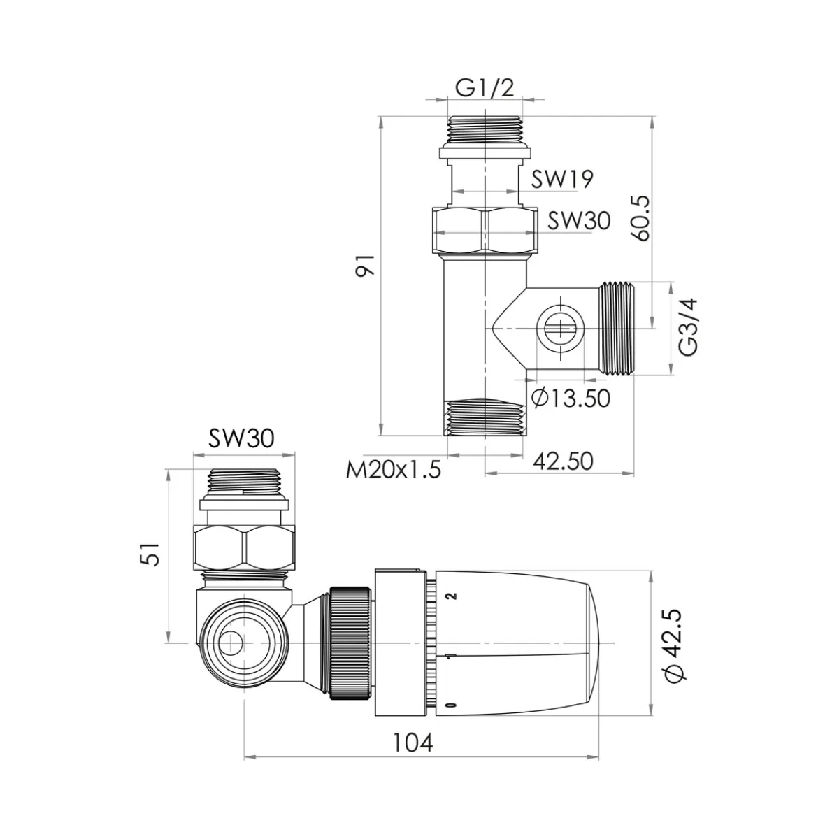 - Thermostat & Rücklauf in einer Garnitur