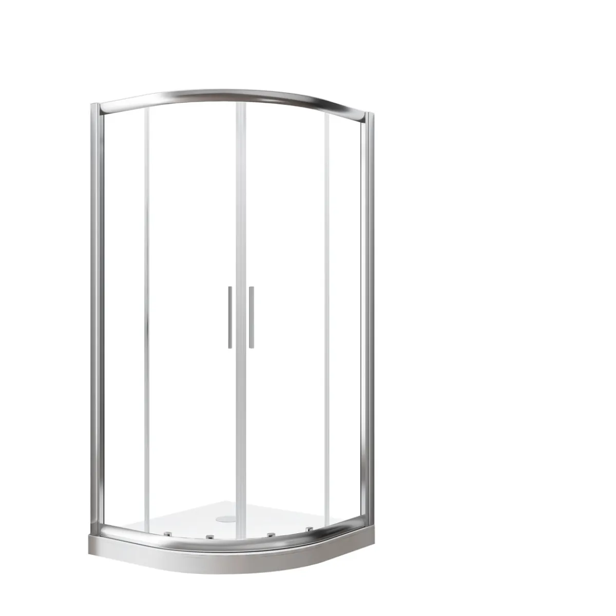 Die Runddusche der Serie Kristall/Trend von Schulte besteht aus vier, 6 mm starken Echtglaselementen. Das hier verbaute Glas wurde nach DIN Norm hergestellt. Das Sicherheitsglas (ESG) weist eine hohe Widerstandskraft gegenüber Belastungen durch Schläge, Stöße, Biegungen oder Temperaturschwankungen auf. Außerdem punktet es in jeder Räumlichkeit mit seiner brillanten Transparenz, die das Bad großflächiger erscheinen lässt.Die hochwertigen Glaselemente werden darüber hinaus von starken Aluminiumprofilen in Chromoptik gerahmt. Diese Rahmung umschließt die gesamte Duschabtrennung und verleiht dieser sowohl ihre exklusive Erscheinung als auch eine gute Standsicherheit.Der Einstieg in die Runddusche fällt dank der beiden verbauten Schiebetüren zum einen großzügig und zum anderen äußerst platzsparend aus: Die praktischen Schiebetüren stehen zu keinem Zeitpunkt in den Raum hinein. Abgerundet wird die Optik der Runddusche schließlich durch ihre zwei formschönen Stabgriffe, die optimal mit den Aluminiumprofilen in Chromoptik harmonieren.Dieser Artikel wird inklusive einer Duschwanne mit flacher Einstiegshöhe geliefert.