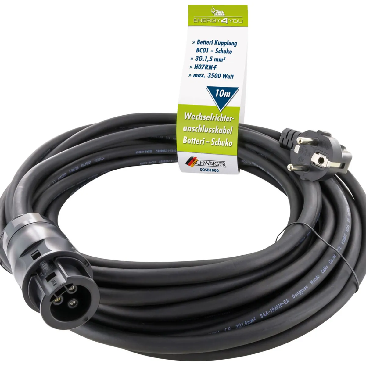 - Lieferumfang beinhaltet ein hochwertiges Betteri-Stecker-auf-Schuko-Kabel mit einer Gesamtlänge von 10 Metern