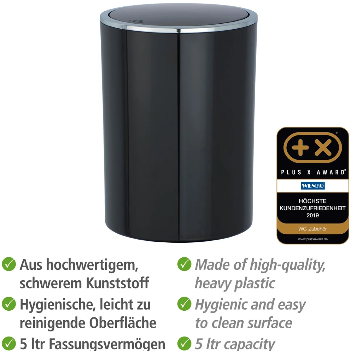 Wenko Schwingdeckeleimer Inca schwarz 5 L – Praktischer Kosmetikeimer für Ihr Badezimmer