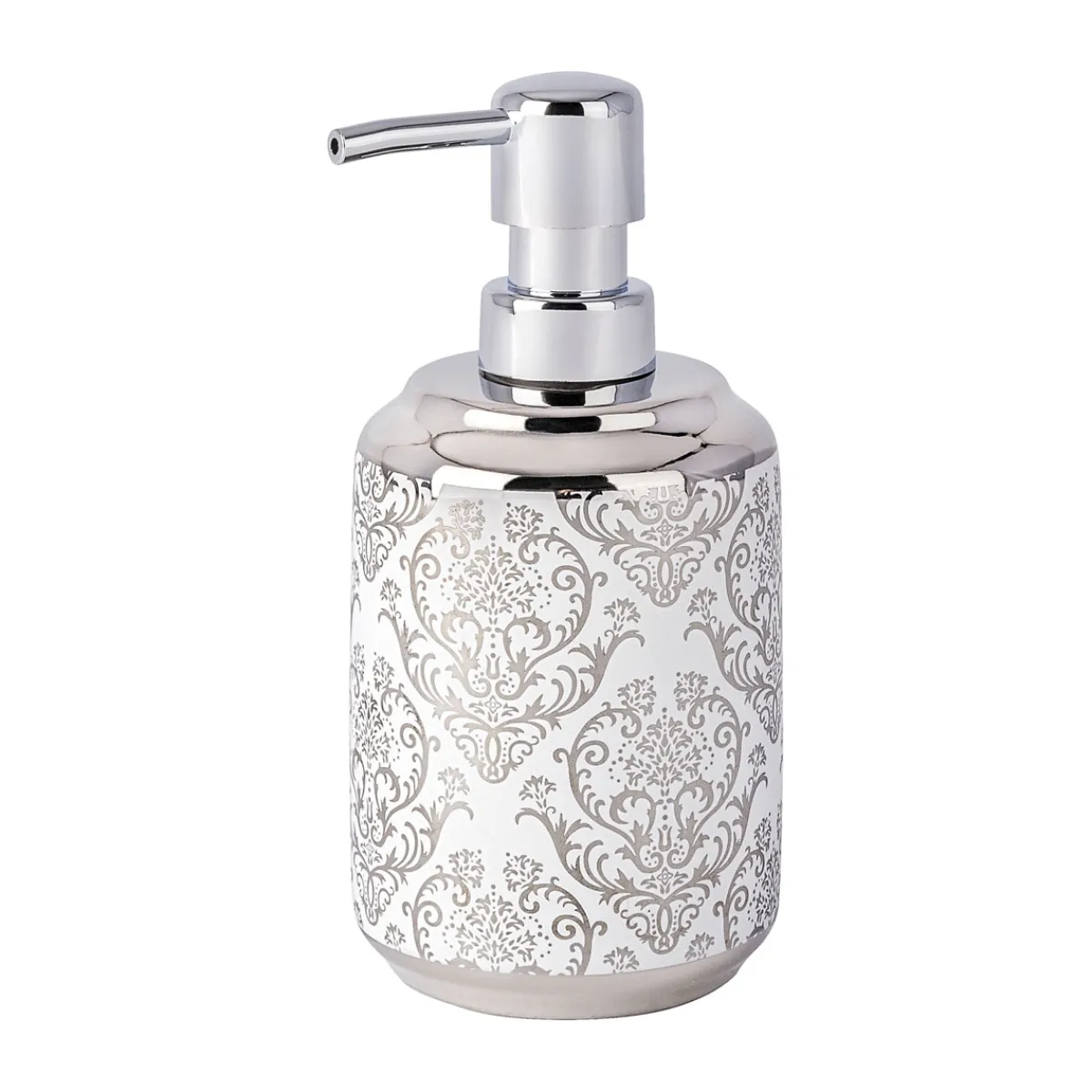 Mit dem Wenko Seifenspender Barock holen Sie sich ein Stück Eleganz in Ihr Badezimmer. Das stilvolle Design mit silbernen Ornamenten und der runden Form machen ihn zu einem echten Hingucker.