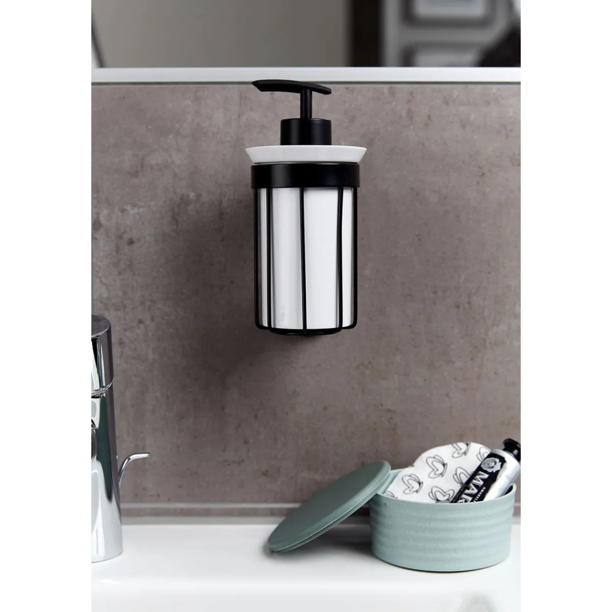 - Lieferumfang: Seifenspender im Gestell, Schrauben und Dübel