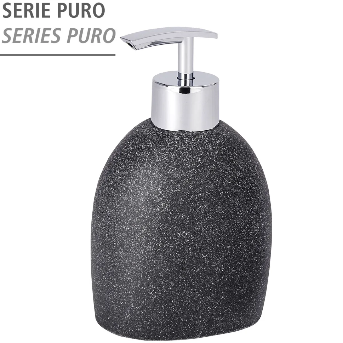 Mit dem Wenko Seifenspender Puro anthrazit verleihen Sie Ihrem Badezimmer eine elegante Note. Der ovale Seifenspender aus Polyresin ist matt und in der Grundfarbe Anthrazit gehalten. Mit einem Fassungsvermögen von 295 ml eignet er sich ideal für Flüssigseife, Lotion oder Spülmittel.