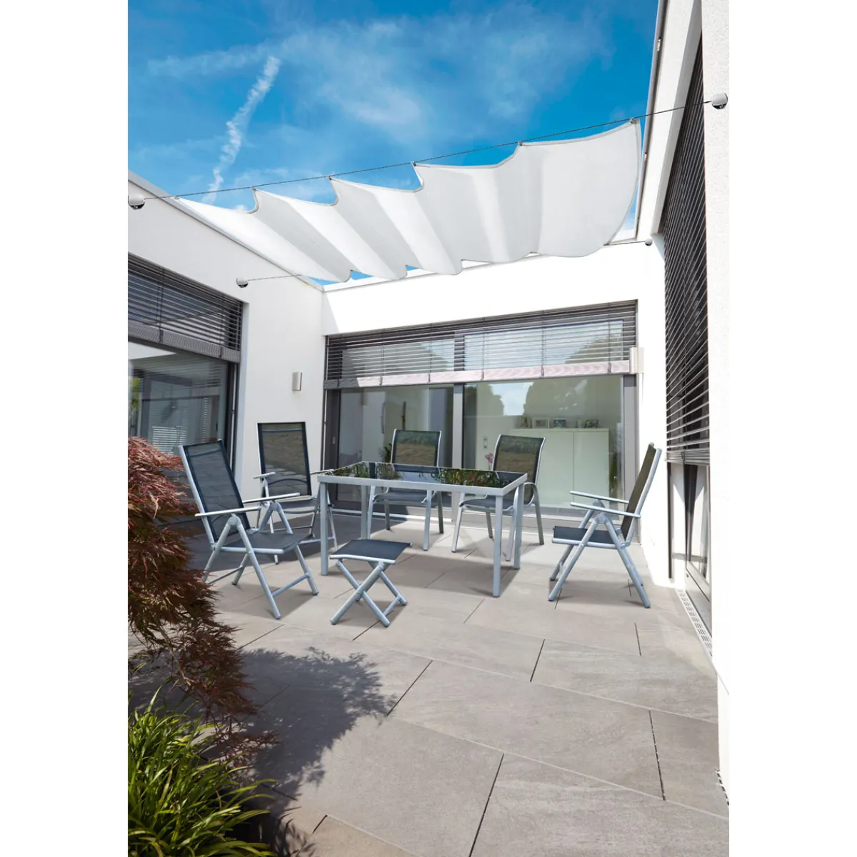 Genießen Sie den Sommer im Schatten mit der Seilspann-Markise in elegantem Weiß!