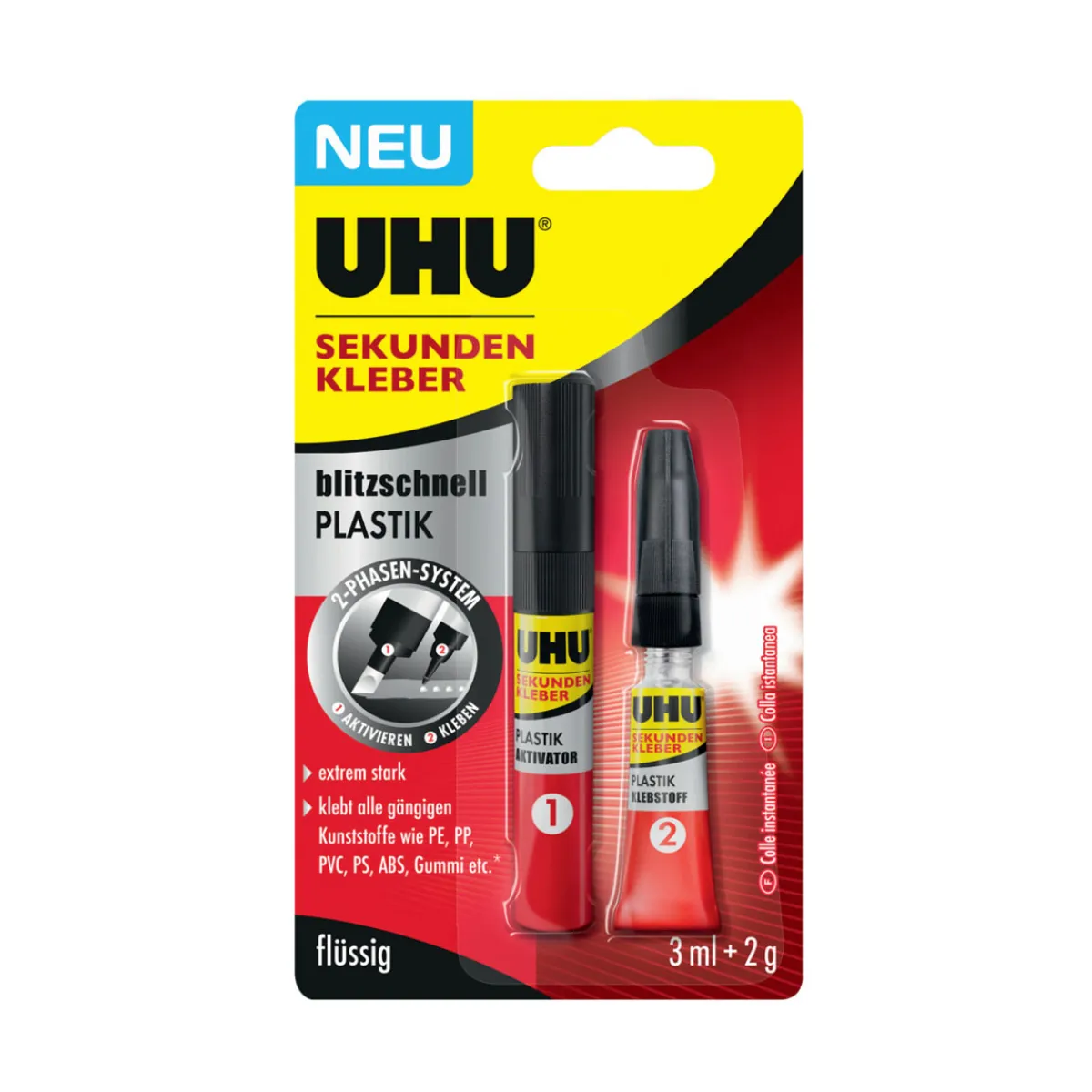 UHU Sekundenkleber Plastik 2 g und 3 ml – Extrem starker Kleber für Kunststoffe
