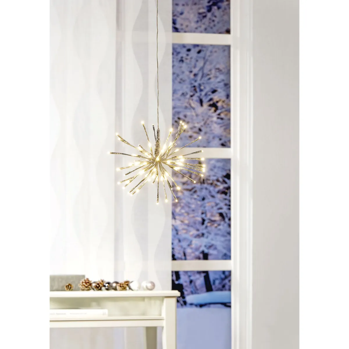 Lassen Sie sich von der festlichen Magie des Silberner-LED-Sterns verzaubern! Mit seinem eleganten, silbernen Design und den strahlenden warmweißen LEDs bringt dieser Stern nicht nur Licht, sondern auch eine Extraportion Gemütlichkeit in Ihre vier Wände. Ob im Wohnzimmerfenster oder draußen auf dem Balkon – der Silberner-LED-Stern sorgt überall für ein stimmungsvolles Ambiente. Das transparente Kabel lässt die 80 funkelnden LEDs wie kleine Sterne am Nachthimmel wirken und lenkt alle Blicke auf das wunderschöne Leuchtobjekt. Dank seiner robusten Verarbeitung eignet sich der LED-Stern sowohl für den Innen- als auch Außenbereich und ist damit vielseitig einsetzbar. Die einfache Handhabung macht es Ihnen leicht, sofort eine festliche Atmosphäre zu schaffen – ganz ohne großen Aufwand. Gönnen Sie sich diesen besonderen Hingucker und verwandeln Sie Ihr Zuhause mit dem Silberner-LED-Stern in eine Wohlfühloase voller Lichtmomente.