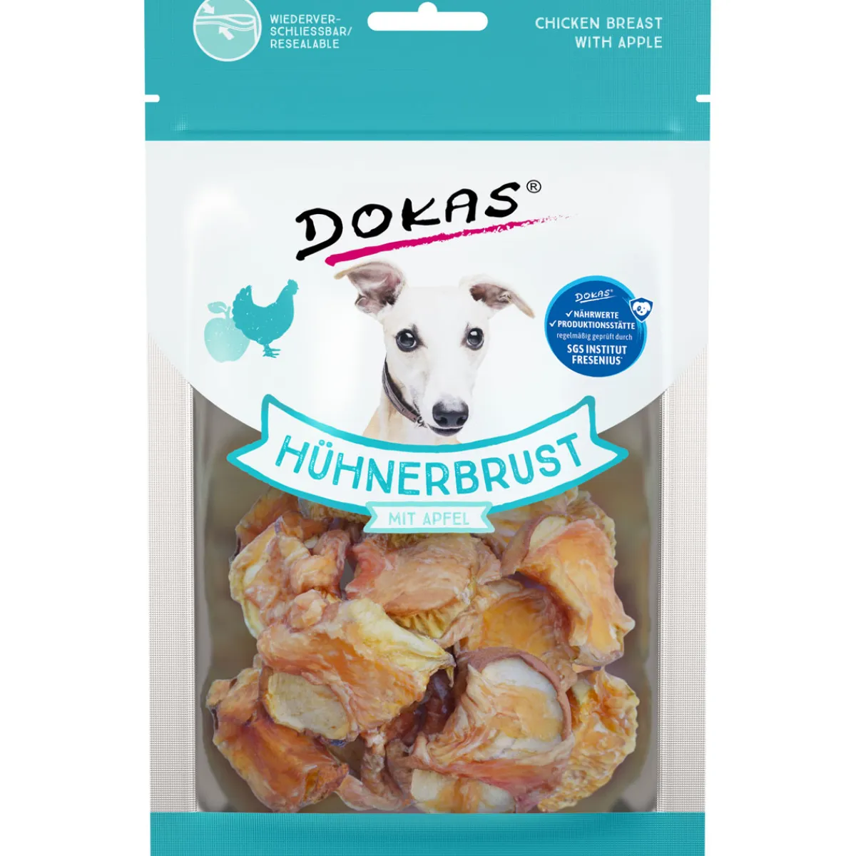 Zusammensetzung:Hühnerbrustfilet 57,0 %, Apfel 35,0 %, pflanzliche Nebenerzeugnisse, MineralstoffeAnalysedaten: Rohprotein 35,3%, Rohfett 2,9%, Rohasche 3,2%, Rohfaser 1,7%, Feuchtigkeit 15,9%