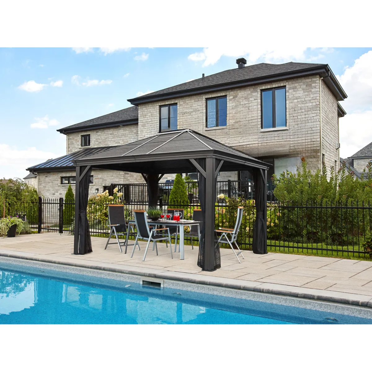 Besonderheiten: * Konzipiert für hohe Schneelasten von bis zu 150kg/m² * Doppeltes Stahldach fördert die Durchlüftung * Integrierte Regenrinne * Witterungsbeständig * Inkl. Moskitonetzen * Für den ganzjährigen Außenbetrieb entwickelt