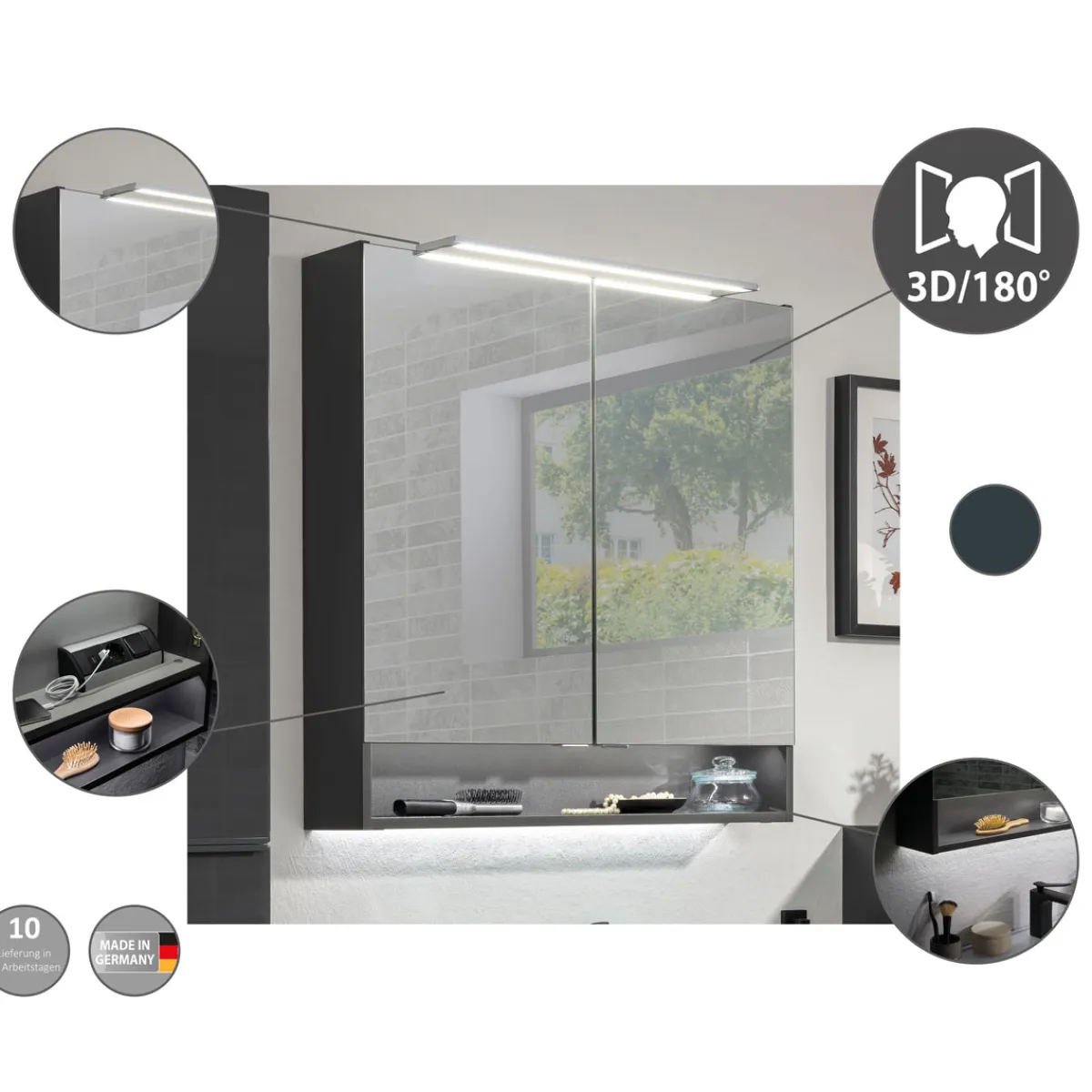 Fackelmann Spiegelschrank LUNA 800 x 793 x 153 mm anthrazit