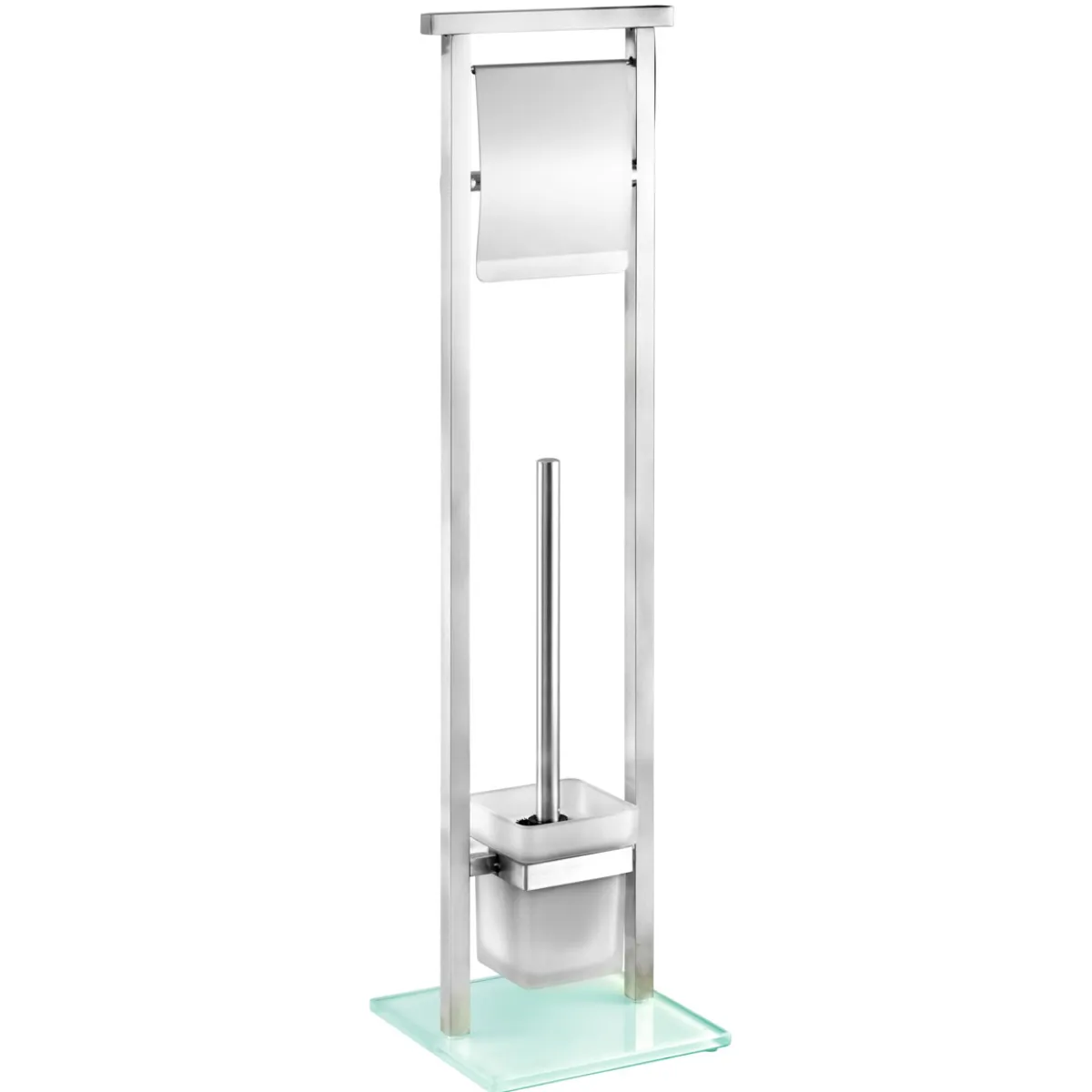 Mit der Wenko Stand WC-Garnitur Debar erhalten Sie eine hochwertige und elegante Lösung zur Aufbewahrung von Toilettenpapier und -bürste. Das edle Design aus Edelstahl und satiniertem Glas verleiht Ihrem Badezimmer eine besondere Note. Die Garnitur ist nicht nur funktional, sondern auch ein echter Hingucker.
