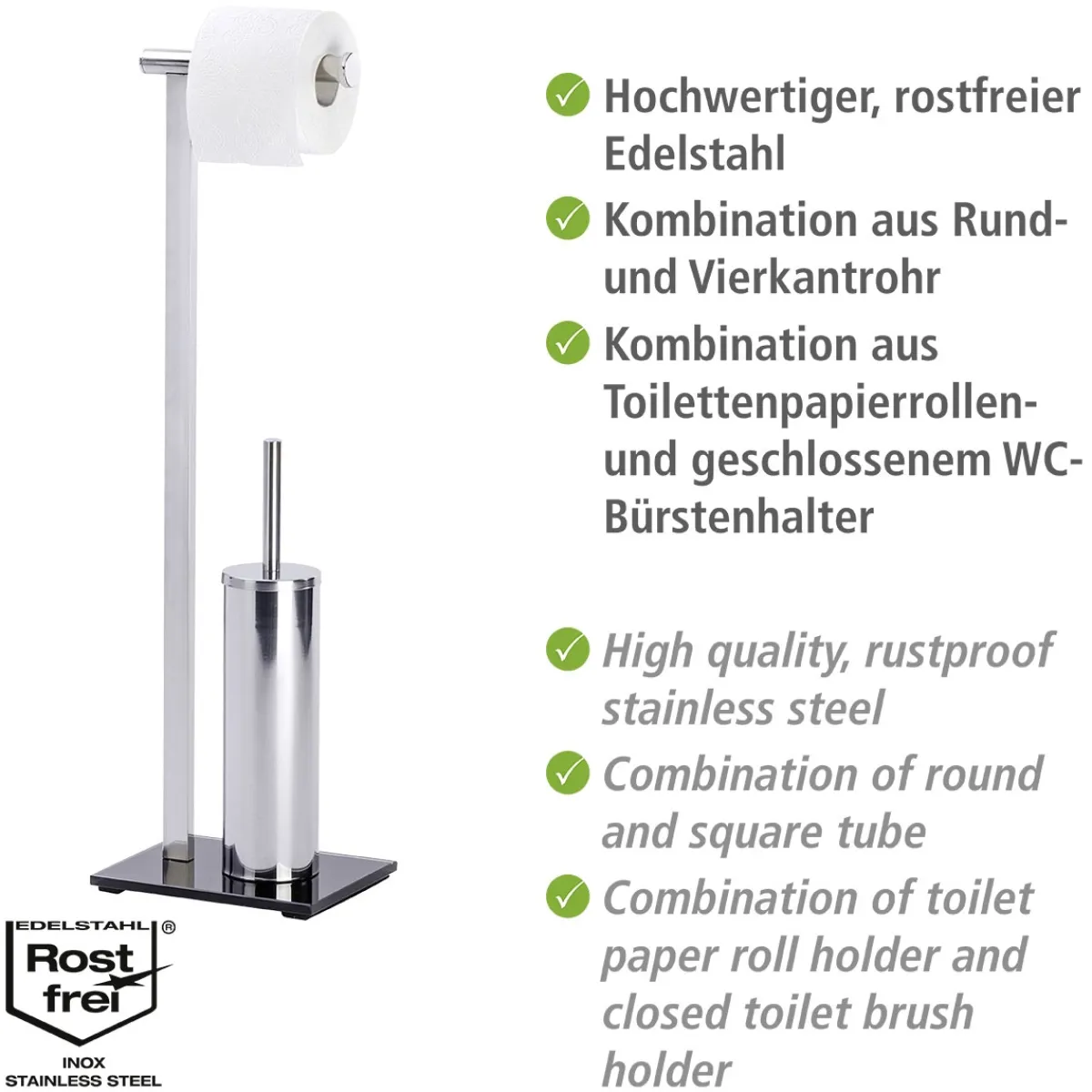 Wenko Stand WC-Garnitur Lava – Edelstahl und gehärtetes Glas für stilvolle Sauberkeit
