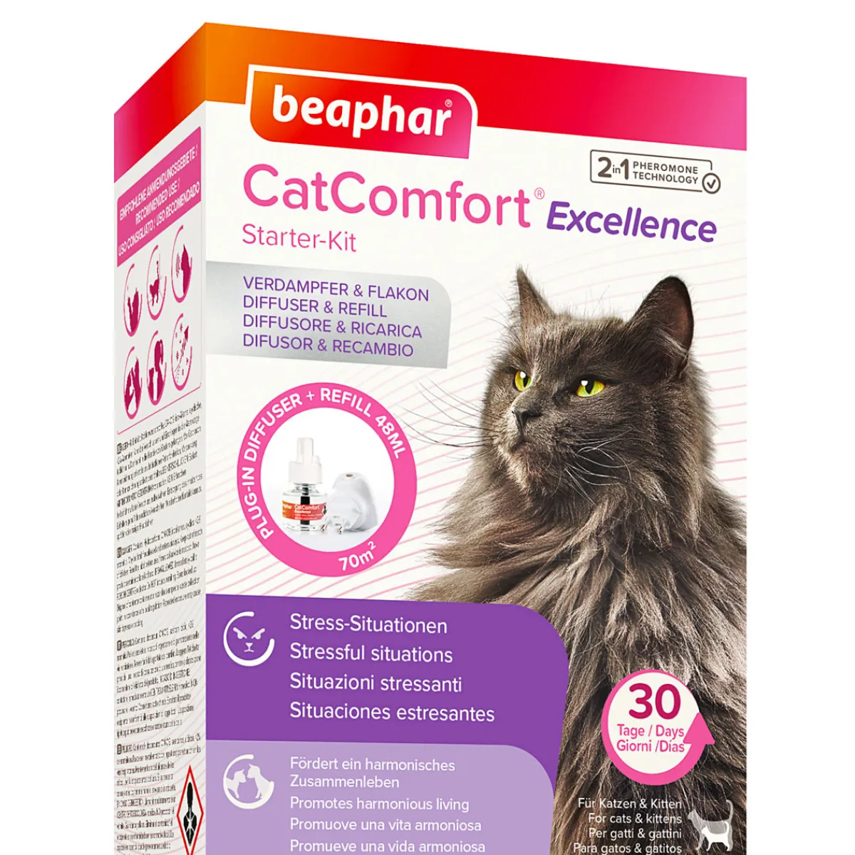 Das Starter-Kit CatComfort ist die ideale Lösung für stressige Situationen und fördert ein harmonisches Zusammenleben mit Ihrer Katze. Mit Pheromonen angereichert, hilft es in herausfordernden Situationen wie Gewittern oder Umzügen sowie bei Konfrontationen mit neuen Erfahrungen.