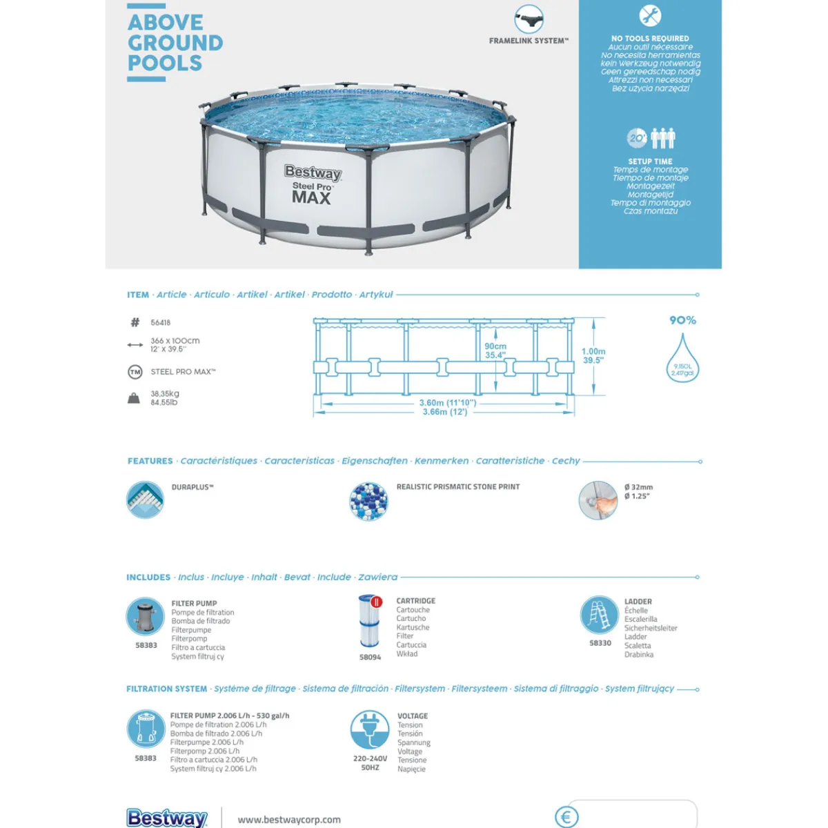 Produktdetails des Bestway Steel Pro Max Frame-Pool-Sets: