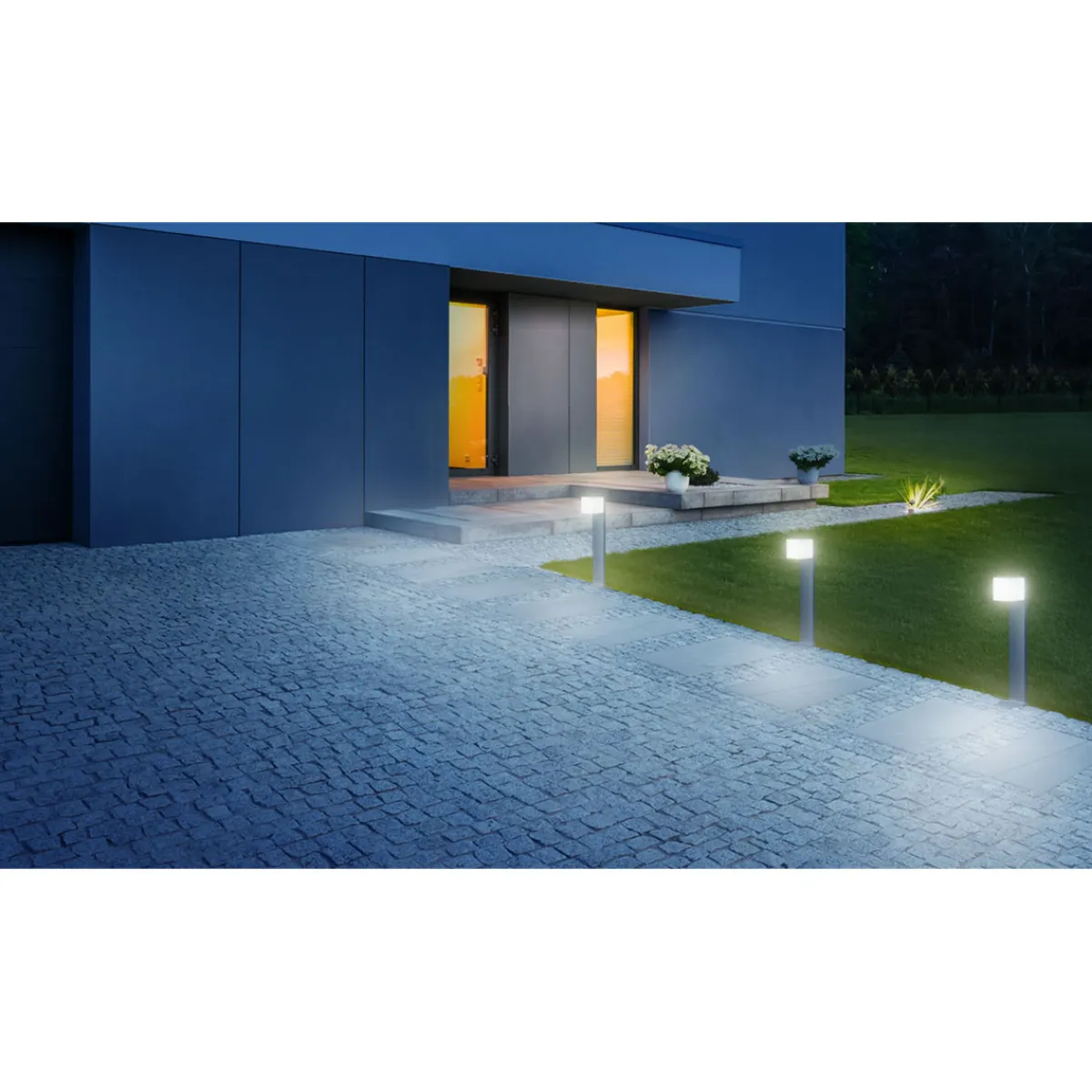 Mit der Steinel Standaußenleuchte erhalten Sie eine hochwertige Beleuchtungsquelle für Ihren Außenbereich. Der integrierte Bewegungs- und Dämmerungssensor sorgt dafür, dass das Licht nur dann angeht wenn es wirklich benötigt wird. Die intelligente Technologie erkennt auch kleine Tiere wie Katzen oder Vögel und schaltet das Licht nicht unnötig ein. Die Montage ist einfach und unkompliziert dank des mitgelieferten Montagematerials sowie der Bedienungsanleitung. Dank ihrer Langlebigkeit von bis zu 50.000 Stunden können Sie sich lange Zeit an dieser modernen Wege- oder Terrassenbeleuchtung erfreuen.