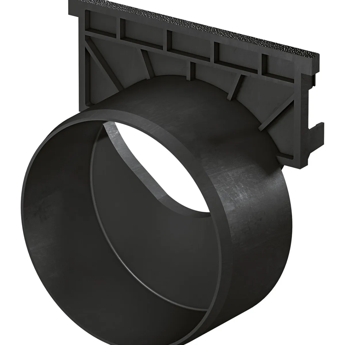 Stirnwand mit Stutzen BxHxL 7×13,5×12,5 cm, für den Anschluss an ein KG Rohr DN/OD 110, Standardline (Polymerbeton) und Hexaline 2.0 (Kunststoff), frostbeständig.