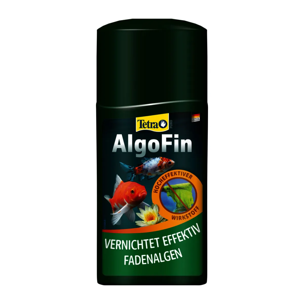 - Tetra Pond AlgoFin ist ein Algizid zur Bekämpfung von Faden-, Schwebe- und Schmieralgen im Teich.