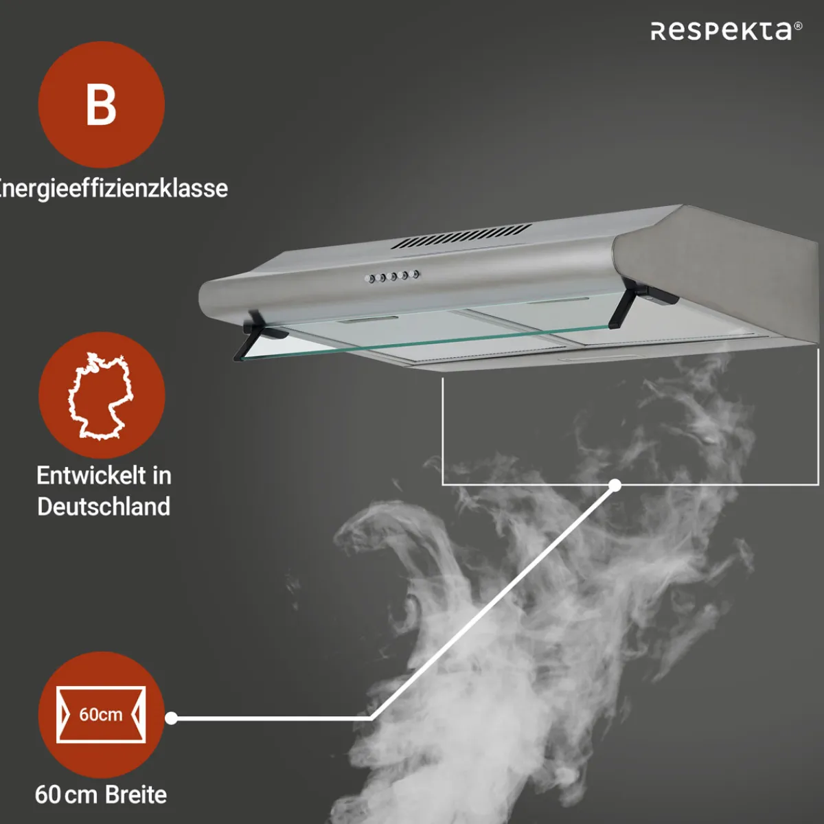 Respekta Tilla Unterbauhaube CH1259IXCN – Edelstahl Dunstabzugshaube für Abluft und Umluft