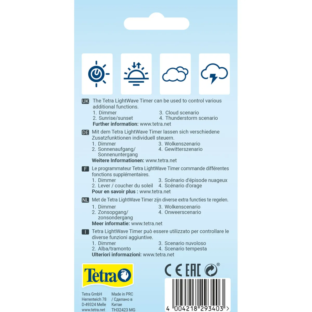 Mit dem Tetra Timer LightWave können Sie die Beleuchtung Ihres Aquariums bequem und einfach steuern. Das Vorschaltgerät ist speziell für die Tetra Light Wave Aquarienbeleuchtung entwickelt worden und sorgt dafür, dass Ihre Fische und Pflanzen immer das richtige Licht erhalten.