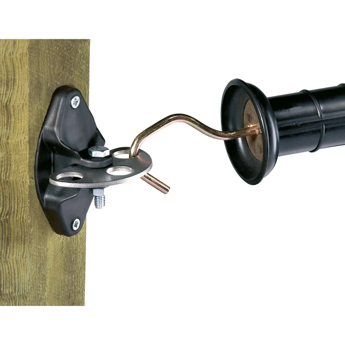 Der Torgriffisolator Vario in Schwarz eignet sich ideal für alle Kunden, die einen stabilen und sicheren Weidezaun benötigen. Egal ob Pferde, Rinder oder Schafe – dieser Isolator hält jedem Tier stand.