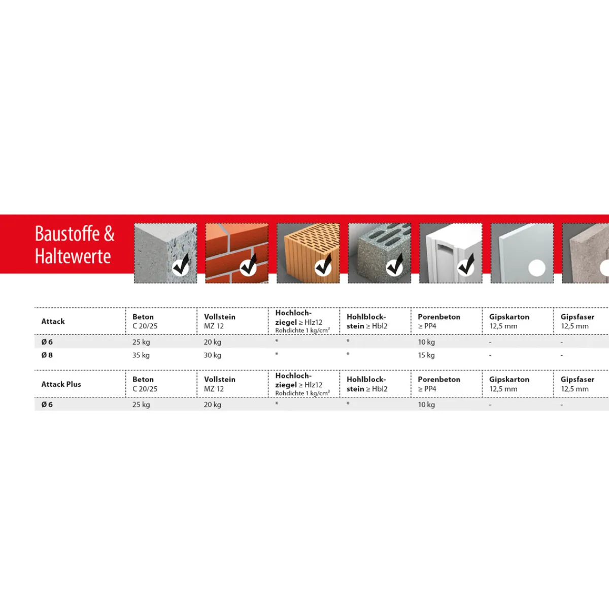 Eigenschaften des TOX Nageldübels Attack 8/100