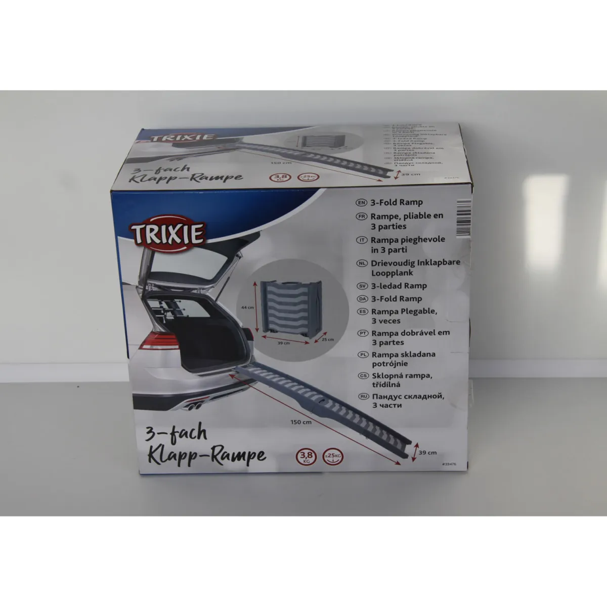 Mit der Trixie Klapp-Rampe haben Sie eine einfache und bequeme Möglichkeit, Ihren Hund sicher ins Auto zu bringen. Die Rampe ist 3-fach klappbar und lässt sich dadurch platzsparend verstauen. Mit einem Gewicht von nur 3,8 kg ist sie leicht zu transportieren.