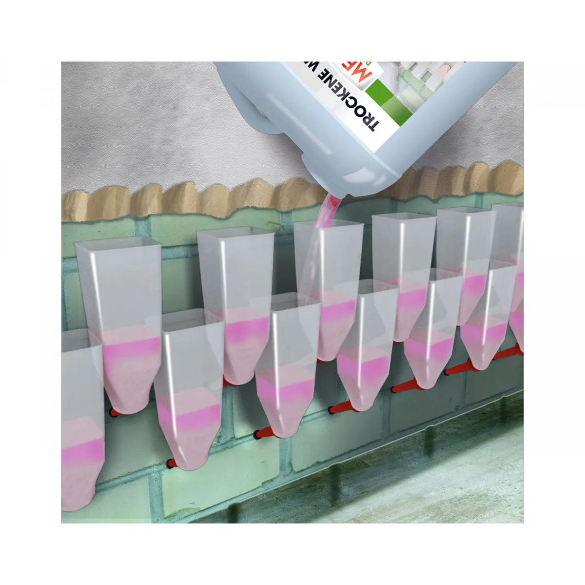 - Bildet neue, dauerhafte Horizontalsperrschicht gegen aufsteigende Feuchtigkeit