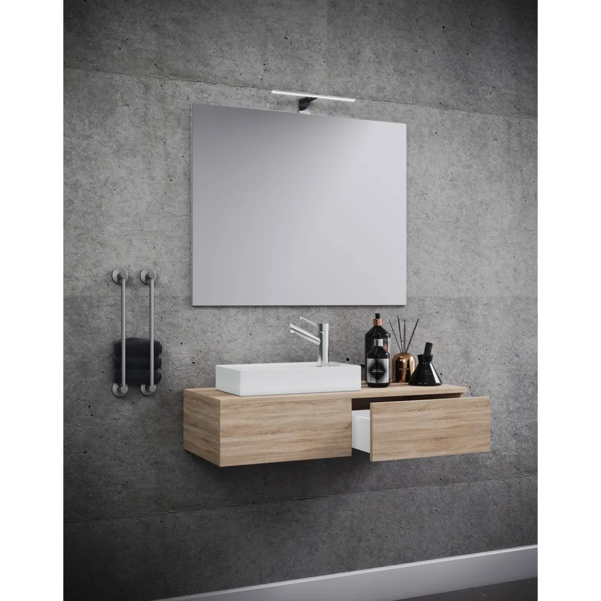 – Griff in Alu-Optik aus MetallWaschbecken: