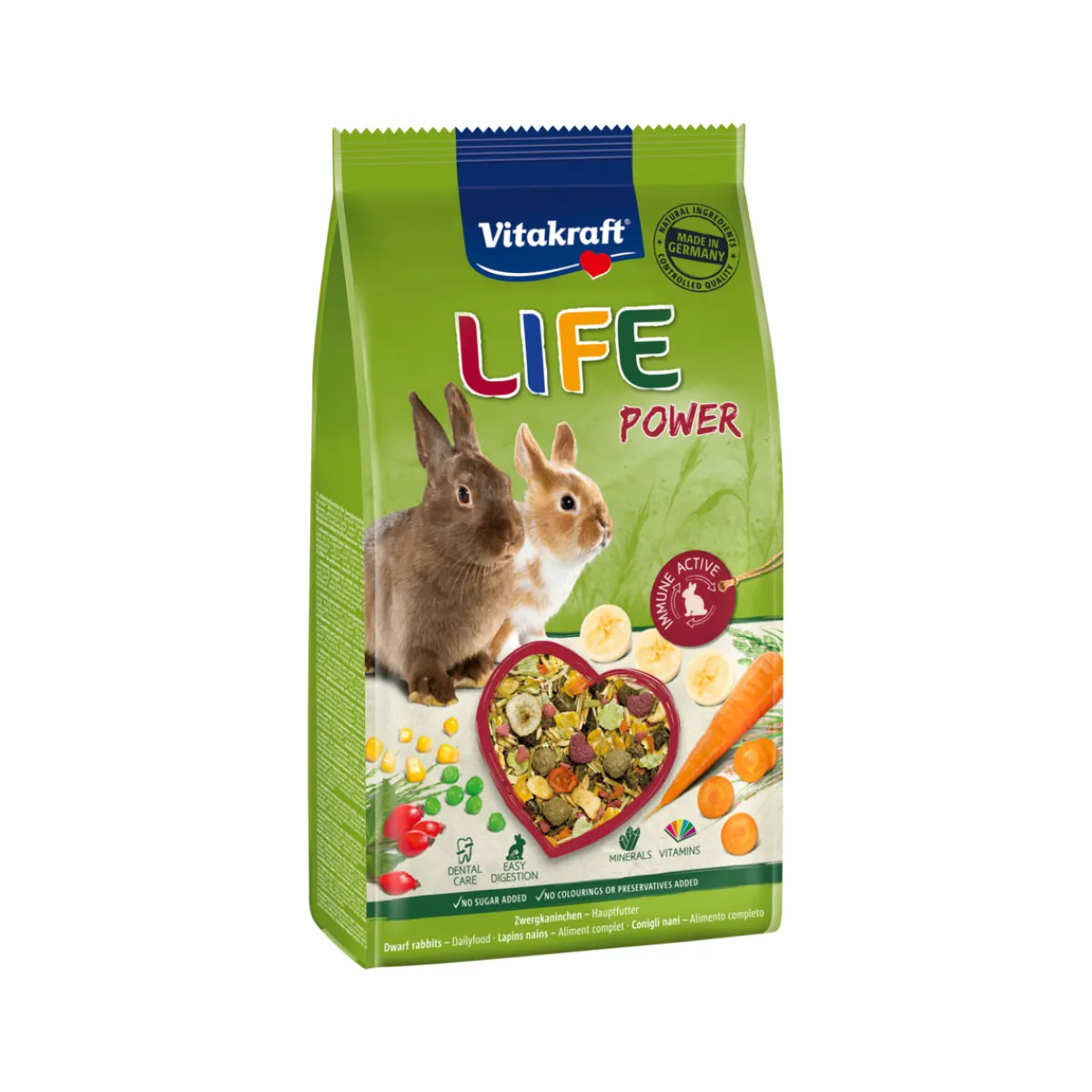 Diese kraftvolle Mischung bringt Power und Fitness in den Futternapf! Der leckere Mix für Zwergkaninchen enthält u. a. knackige Karotten für die Extraportion an Vitaminen und fruchtige Bananen als Lieferant für Energie und Mineralstoffe. Wertvolle Beta-Glucane stärken die Abwehrkräfte der Tiere, der gesunde Anteil an Rohfaser unterstützt zudem die Verdauung. Auch hilft die faserreiche Zusammensetzung der Mischung beim wichtigen Abrieb der stets nachwachsenden Nagerzähne. Von Nagerexperten und Tierärzten entwickelt!