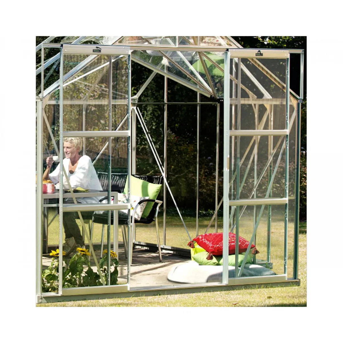 Die Vitavia Doppelschiebetür für das Gewächshaus Sirius
