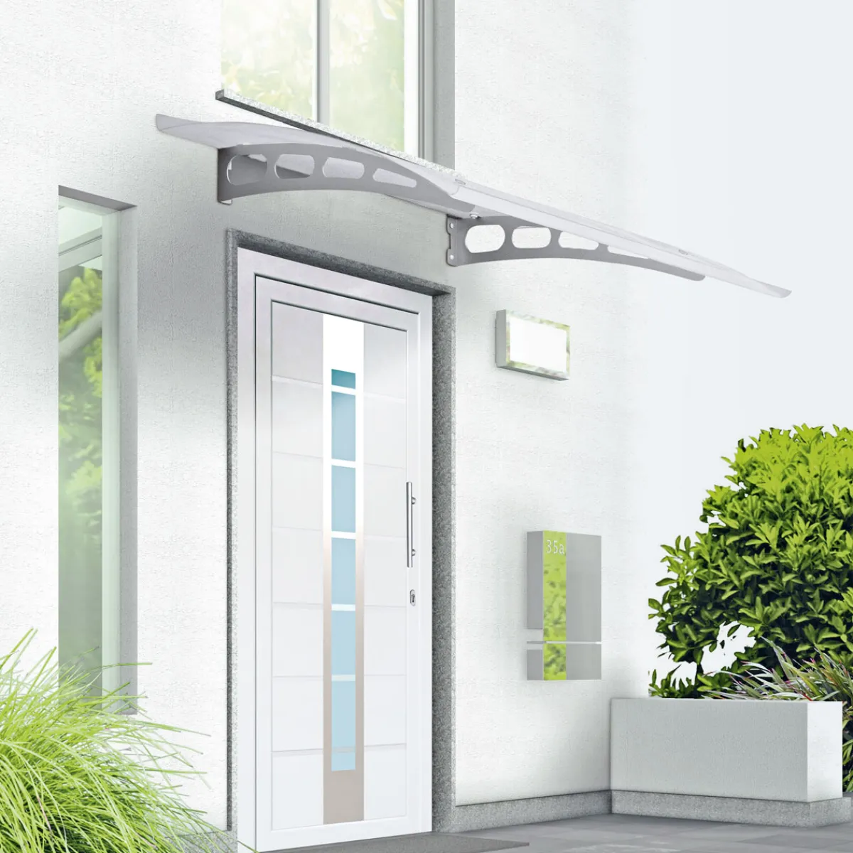 Schützen Sie Ihren Eingangsbereich vor Regen und Schnee mit dem Durabil Vordach aus Edelstahl. Das moderne Design und die hochwertigen Materialien machen es zu einem Blickfang an Ihrem Haus.